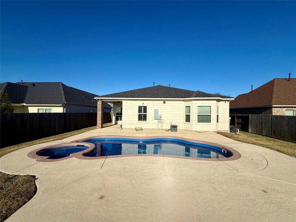Welcome to this stunning 3 bedroom,2 bathroom home located in the highly sought-after Needville School District,within walking distance to the elementary school. Built in 2018 and recently renovated,this home offers modern finishes and a functional,open layout ideal for comfortable living. The kitchen features granite countertops and stainless steel appliances,and the home includes washer and dryer for added convenience. Enjoy your own private backyard oasis with a pool and hot tub,perfect for relaxing or entertaining. With no backyard neighbors,the property offers excellent privacy and peaceful views. Situated on a very quiet street,this home provides a true retreat. Monthly pool maintenance is included in the rent,making outdoor living easy and stress-free. This is a rare lease opportunity combining privacy,modern updates,and an excellent location. Schedule your showing today — this home won’t last long! MLS# 92662181