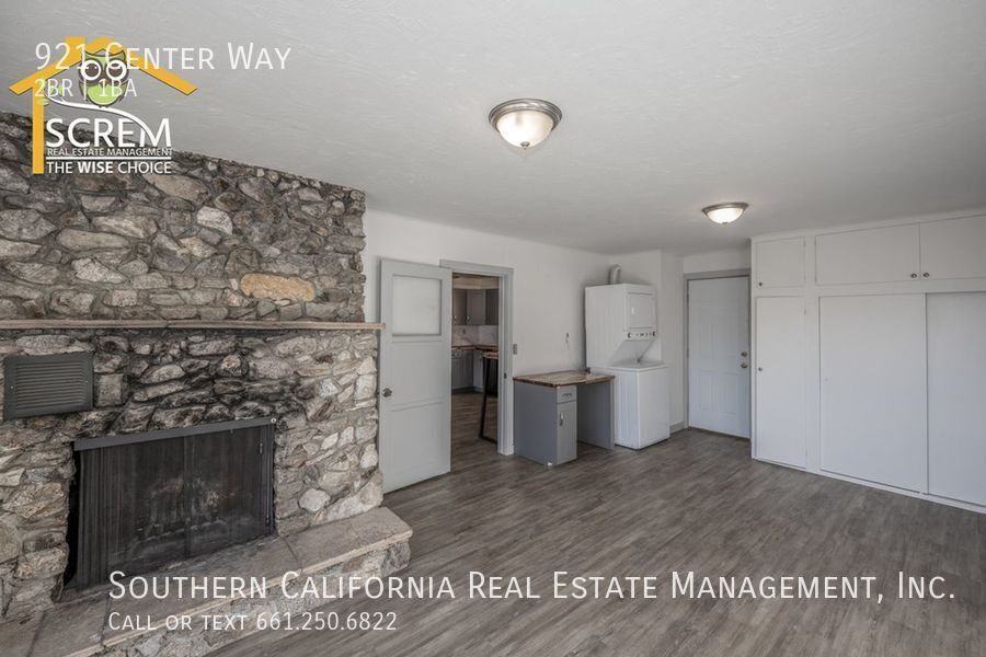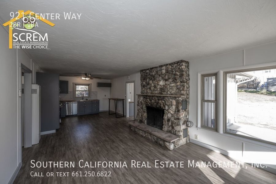 Charming two-bedroom home with an option for a third bedroom and one bathroom located in Frazier Park. The property features a gated entrance that leads to this cozy residence. A spacious front porch welcomes you into the bright living room, which boasts luxury vinyl plank flooring and a brick fireplace. Adjacent to the living room is the open kitchen, equipped with stainless steel appliances, beautiful countertops, soft-close drawers, a ceiling fan, and a custom table. The kitchen appliances include a gas stovetop, a single oven, a dishwasher, a microwave, and a refrigerator. There is a generous bonus room that can serve as either an additional living room or a third bedroom. This versatile space includes luxury vinyl plank flooring, a stone fireplace, a built-in closet, washer and dryer hookups for a stackable unit, a custom folding table, and a separate entrance with French doors leading to the front porch. Both bedrooms feature ceiling fans, luxury vinyl flooring, and built-in closets. The full bathroom completes the layout. There is ample parking available within the gated entrance. This home is conveniently located within walking distance to trails, restaurants, and shopping. *Owner may consider a pet. **Washer and dryer pictured, is not included. For inquiries about this property, please email . To schedule a viewing appointment, go to