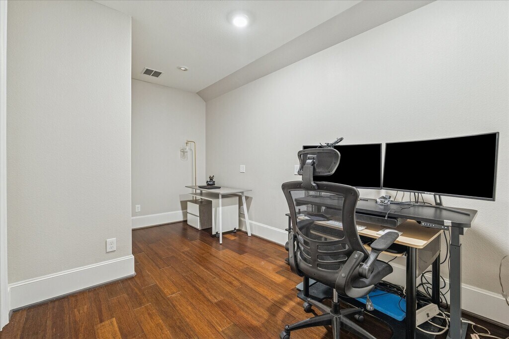 Located in the prestigious guard-gated community of Somerset Green,this elegant 3-story corner lot home offers first-floor living,3 bedrooms,3.5 baths,a private office,and a fenced backyard. Enjoy abundant natural light from walls of windows and the convenience of a private driveway with extra parking. The third-floor terrace provides a perfect retreat for entertaining or relaxing. Community amenities include scenic canals,green spaces,and 24/7 security—all just minutes from The Heights,Memorial Park,and Downtown. MLS# 70648081