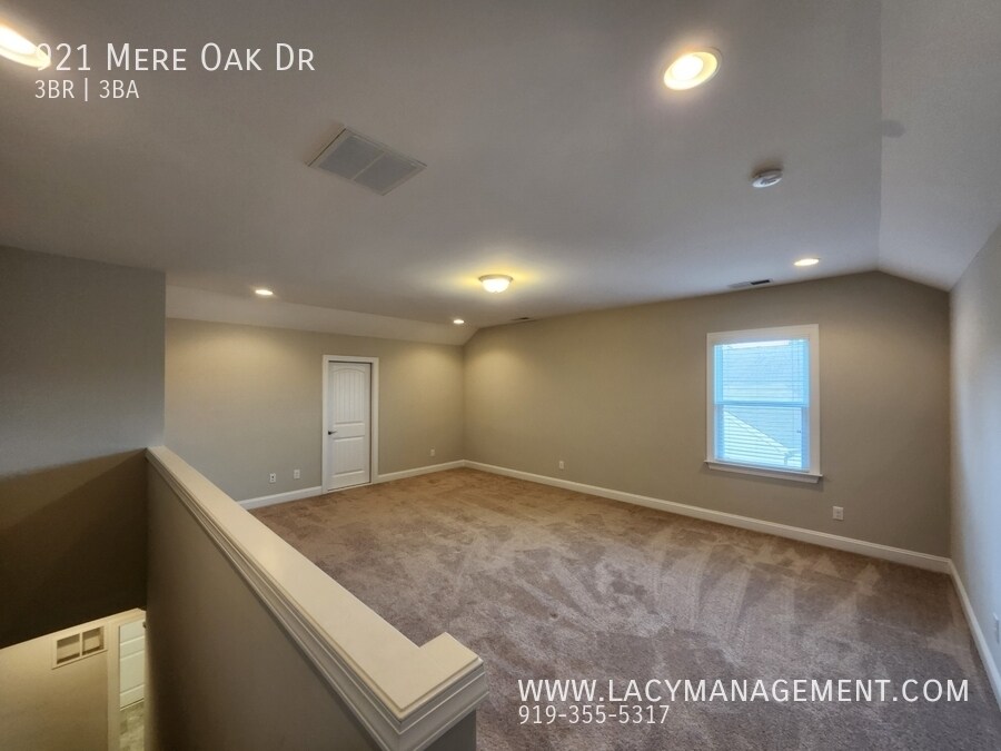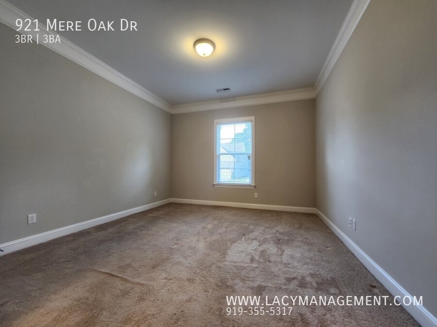 Elegant 3-Bedroom Home in the Prestigious Manors at Old Lead Mine, Raleigh! Welcome to this stunning **3-bedroom, 3-bathroom single-family home** offering nearly **2,870 sq. ft.** of beautifully designed living space. This modern residence combines timeless elegance with contemporary comfort in one of Raleigh's most desirable communities. This stunning home features a dedicated study room, perfect for remote work or reading; a spacious game room, ideal for entertainment; and a bright sunroom to unwind and soak in natural light. 3 full bathrooms designed for comfort and convenience, along with a large 2-car garage (25 x 20 ft) offering plenty of space for vehicles This beautiful home comes equipped with solar panels, helping you save on electricity bills while enjoying sustainable, eco-friendly living! Step inside to discover an open-concept layout filled with natural light. The spacious living area features high ceilings and custom finishes, seamlessly connecting to a gourmet kitchen equipped with stainless-steel appliances, granite countertops, and an oversized island—perfect for entertaining or family gatherings. The primary suite offers a serene retreat with a luxurious en-suite bathroom and ample closet space. Additional bedrooms are generously sized and ideal for guests, a home office, or flex use. Enjoy a versatile bonus room, perfect for media or recreation, adding to the home's exceptional functionality. Located in the sought-after **Manors at Old Lead Mine** community, residents enjoy a peaceful neighborhood setting with easy access to premier shopping, dining, and major Raleigh attractions. Experience refined living in a prime North Raleigh location—schedule your visit to **921 Mere Oak Dr** today! Schedule an online showing at: . Submit your application online at: Resident Benefits: **Get over $100 in monthly benefits for just $49.95 with our Resident Benefits Package! Enjoy valuable services with the flexibility to customize or opt out.*** Application Criteria: a) Gross household income of at least 3 times the rent b) A credit score of 650+ is preferred; we are happy to discuss your situation if your credit score is lower c) No evictions in the last 5 years d) A one-time pet fee of $300 per pet applies. An additional deposit may be required for multiple pets. No monthly pet fee; pet screening is required after application approval: $30 per pet. e) One-time admin fee of $250 required to pay after signing the lease