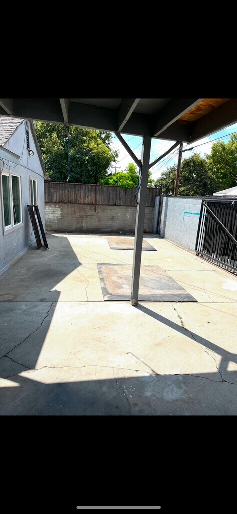 Property Id: 2445659 Fenced 2 bedroom home.Park up to 4 cars Also free street parking.Owner pays water/trash/sewage. Tenant pays all other utilities. Near bus shopping schools and freeways.Carport- No garage. Small dog ok- house inside around 800 Square ft