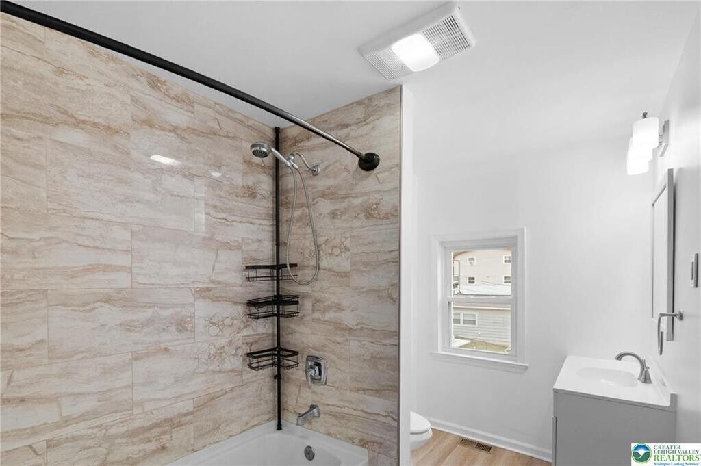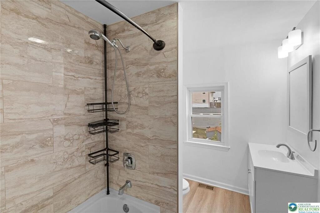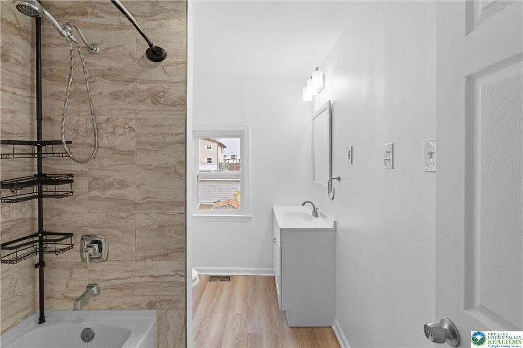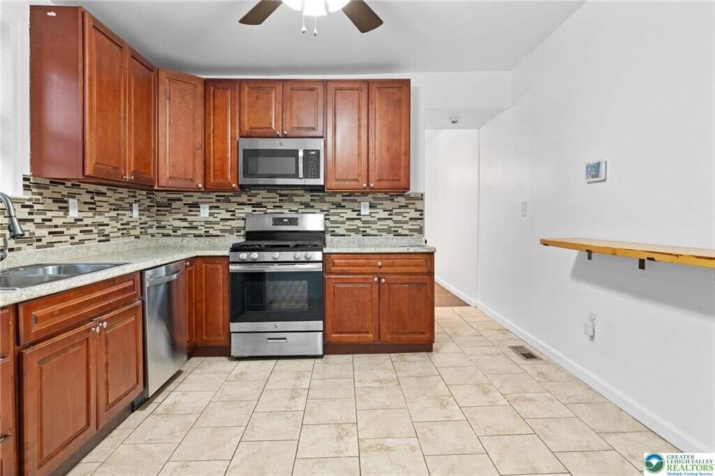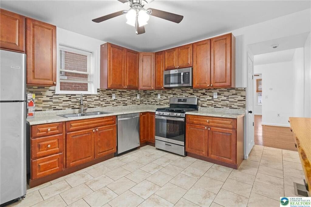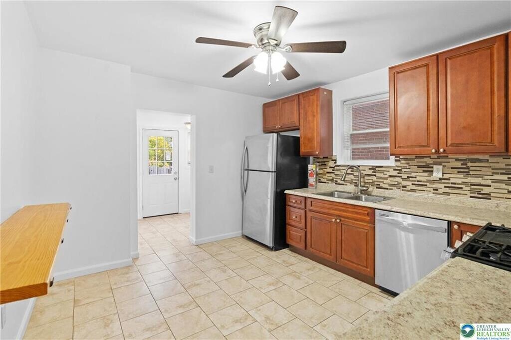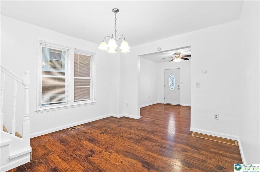 Beautifully Updated 3 Bedroom 1.5 Bathroom Semi-Detached Twin Rental in Desirable West Easton located within the highly sought-after Wilson Area School District! The inviting Covered Front Porch leads into a Bright Open-Concept Living/Dining Area, perfect for everyday living. The spacious kitchen features wood cabinetry, stainless steel appliances and a convenient breakfast bar. Just off the kitchen, you’ll find a mudroom/laundry room with washer/dryer, a modern half bath and access to the fenced-in backyard. The 2nd floor offers 2 bedrooms and a Versatile Bonus Room ideal for Home Office or Walk-In Closet. A Full Bath with Tiled Shower Tub Combo and New Vanity complete this level. Travel upstairs to the 3rd floor to find the last bedroom featuring a skylight window and electric baseboard heat. Notable Highlights include Newer Windows, Ceiling Fans, Fresh Interior Paint Throughout and an Economical Natural Gas Furnace (forced hot air on 1st and 2nd FL). The unfinished basement provides Ample Storage Space. Enjoy on-street parking and a convenient *walkable* location close to St. Luke’s Hospital, Shopping, Groceries, Schools and Route 22. Thoughtfully Updated with you in mind... schedule your showing today!
