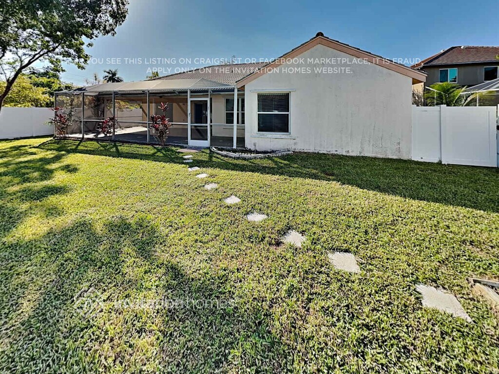 Lease this home and get more from Invitation Homes professional property management. This home comes fully loaded with quality amenities, must-have services, high-end tech and ProCare® professional maintenance. Your estimated total monthly payment is $3193.90. That covers your base rent, $3049.00 + our required services designed to make your life easier: Air Filter Delivery Fee ($9.95), Internet & Media ($85), Smart Home with video doorbell ($40), and Utility Billing Service Fee ($9.95). Base rent varies based on selected lease term. Taking time for yourself will be even easier in a house fitted to your needs. Inject your personality into this beautiful house and you will feel right at home. When you walk into this beautiful house, you will find spacious bedrooms, a finished garage, stylish tile, and luxury vinyl plank flooring. Enjoy preparing meals in a finished kitchen. Stainless steel appliances, granite countertops, recessed lighting, and beautiful cabinetry give you a worry-free cooking space worthy of you. The backyard brings the whole house together. And when you need a breath of fresh air, step out into a fenced backyard complete with a screened-in sunroom. Neighborhood amenities include a pool and a park. Apply online today! At Invitation Homes, we offer pet-friendly, yard-having homes for lease with Smart Home technology in awesome neighborhoods across the country. Live in a great house without the headache and long-term commitment of owning. Discover your dream home with Invitation Homes. Our Lease Easy bundle – which includes Smart Home, Air Filter Delivery, and Utilities Management – is a key part of your worry-free leasing lifestyle. These services are required by your lease at an additional monthly cost. Monthly fees for pets and pools may also apply. Home Features and Amenities: Air Conditioning, Fenced Yard, Garage, Granite Countertops, Long Lease Terms, Luxury Vinyl Plank, Pet Friendly, Primary Bedroom on Main, Recessed Lighting, Single Story House, Smart Home, Stainless Steel Appliances, Tile, Walk in Closet, W/D Hookups, and professionally managed by Invitation Homes. Neighborhood Features and Amenities: Community Pool, Park Invitation Homes is an equal housing lessor under the FHA. Applicable local, state and federal laws may apply. Additional terms and conditions apply. This listing is not an offer to rent. You must submit additional information including an application to rent and an application fee. All leasing information is believed to be accurate, but changes may have occurred since photographs were taken and square footage is estimated. Furthermore, prices and dates may change without notice. Every approved applicant must confirm the status of pet(s) in their home through and pay applicable pet registration fees prior to the execution of the final lease agreement. See InvitationHomes website for more information. Beware of scams: Employees of Invitation Homes will never ask you for your username and password. Invitation Homes does not advertise on Craigslist, Social Serve, etc. We own our homes; there are no private owners. All funds to lease with Invitation Homes are paid directly through our website, never through wire transfer or payment app like Zelle, Pay Pal, or Cash App. For more info, please submit an inquiry for this home. Applications are subject to our qualification requirements. Additional terms and conditions apply. CONSENT TO CALLS & TEXT MESSAGING: By entering your contact information, you expressly consent to receive emails, calls, and text messages from Invitation Homes including by autodialer, prerecorded or artificial voice and including marketing communications. Msg & Data rates may apply. You also agree to our Terms of Use and our Privacy Policy.