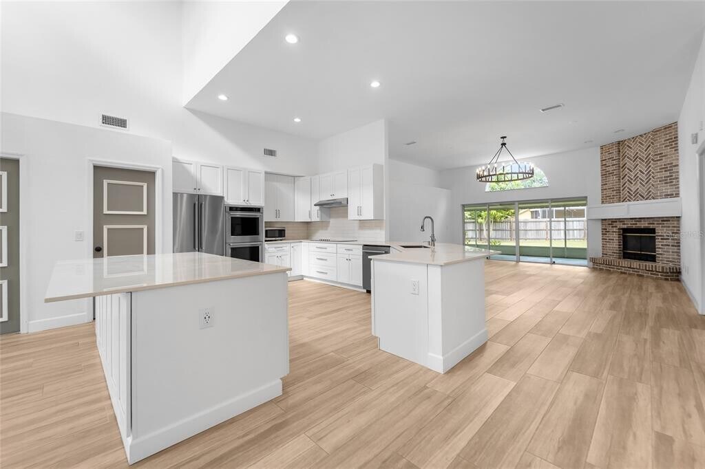 Step into this completely renovated 4-bedroom,2 bathroom home in the desirable Cross Creek community. This single-story open concept layout offers a huge dining area,along with a den/office space adjacent to the updated kitchen with soaring ceilings and natural light. The spacious kitchen features new cabinets and appliances and overlooks the large family room and wood burning fireplace. The glass sliding doors lead to an expansive enclosed back patio and large fully fenced in backyard perfect for everyday living and entertaining. The primary suite offers private access to the patio and an ensuite bath complete with dual vanities,walk-in closet,a garden tub and separate shower. The additional bedrooms,laundry room and full bathroom are situated on the other side of the home. This home is situated with easy access to shopping,dining,and I-275,this location offers a convenient commute to downtown Tampa and the beaches. MLS# TB8453979