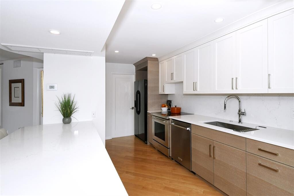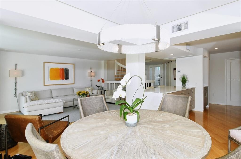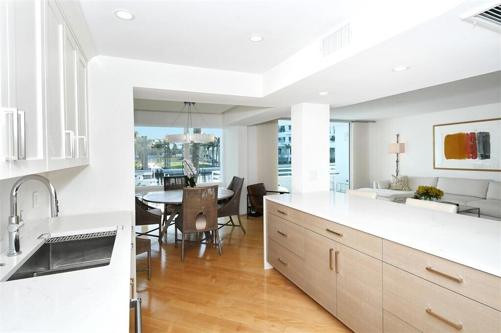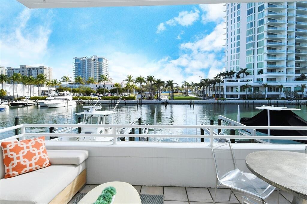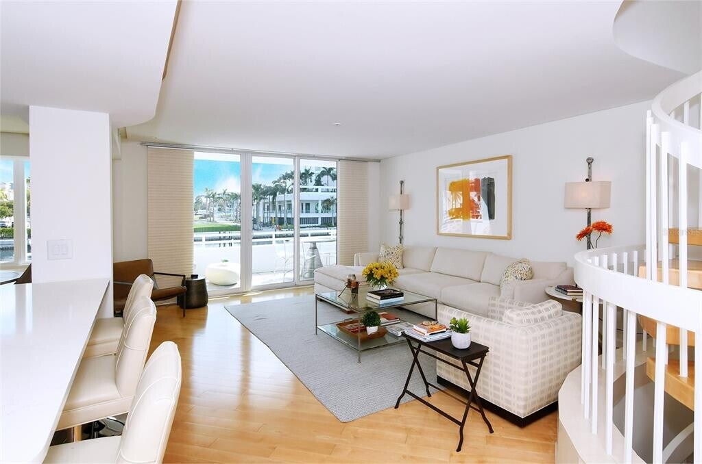 Annual unfurnished townhouse available for lease in downtown Sarasota,right on the bay! The townhouse combines gorgeous water views with downtown convenience and in the beautiful community of Marina Suites at end of Blvd of the Arts. The home features beautiful maple wood engineered flooring,a newly remodeled kitchen with Sub-Zero and Wolf appliances,and marble and travertine throughout. An open circular staircase from the ground to third floor is capped with a skylight that brings light into the entire space. The top level includes the main with luxurious spa-like en-suite bath,a guest bedroom with an en-suite bath and space in between for an office. The middle level features an open great room with a built-in bar ideal for entertaining guests,an open kitchen and dining room,all with views of the water. The first level includes a guest suite with room for office/living space with bedroom,private patio and bath—square footage on this floor is not included in listed square footage. A laundry room off the kitchen leads to a two-car garage with plenty of storage above. Community amenities include resort-style heated pools,tennis,exercise areas,boat/kayak docks and a 24-hour staffed security gatehouse. Just .9 miles to Main Street,three miles to St. Armands and 3.5 miles to Lido Beach. Go to the Hyatt,The Van Wezel,the waterfront park,the Ritz and more. MLS# A4657611