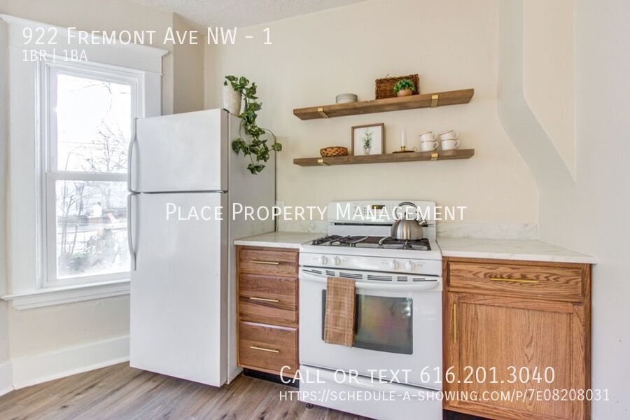 Welcome to this beautifully updated one-bedroom unit located in the vibrant Westside of Grand Rapids! Enjoy the convenience of being just minutes away from an array of fantastic shops, restaurants, and entertainment options. This unit boasts an abundance of natural light from all the windows, making the space feel warm and inviting. Freshly painted with brand new flooring and modern fixtures throughout, it's move-in ready and waiting for you to call it home. The bathroom offers additional storage with built-in shelving for your convenience. You'll appreciate the privacy of your own entrance and the added bonus of a shared, fenced-in backyard — perfect for outdoor relaxation. Don't miss your chance to experience this cozy, updated space. Key Details: ~Tenant responsible for Gas, $20/month Electric, $20/month Water/Sewer, Lawn Care, Snow Removal, and Trash Removal ~No pets allowed * Unit is Staged , Does not include Furnishings Schedule a showing today and make this charming unit your next home! Stove/Range