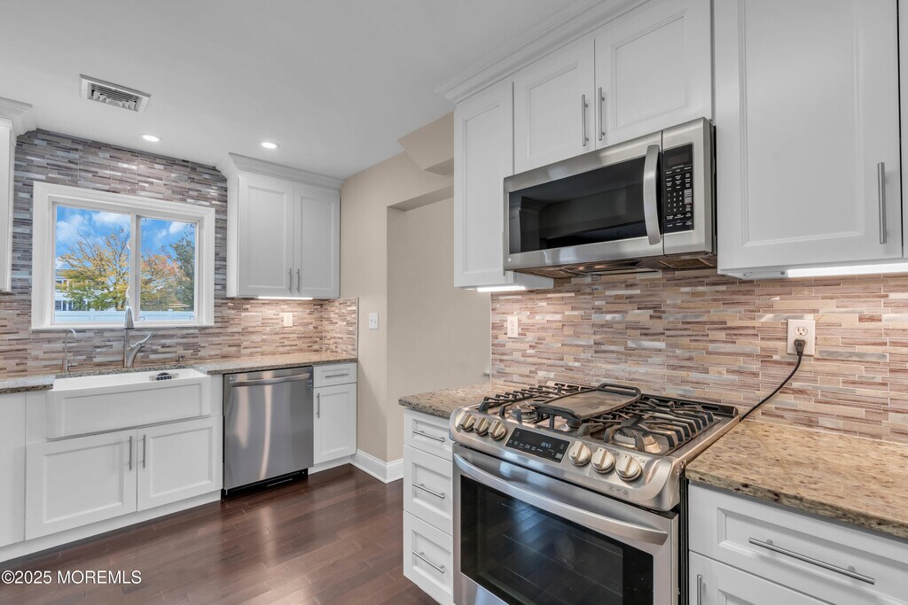 Welcome home! This tastefully updated colonial home is tucked away in one of Brick's most desirable neighborhoods. Step into a two-story foyer that leads to a formal living room,dining room,and a spacious family room. The heart of the home is the modern kitchen with high-end stainless-steel appliances and bar seating,flowing effortlessly to the backyard with paver patio,perfect for entertaining,with serene views of the inground pool. Upstairs,you'll find three generously sized bedrooms and two full spa-like bathrooms and a conveniently located laundry room. The home also boasts 2-year young roof,newer pool liner,central HVAC system,sprinkler system,vinyl fence,and an oversized 2-car garage. Finished basement is perfect for a cozy hangout space,home gym or an office and offers plenty of storage space. Situated on a corner lot,there is ample room for entertaining,play,or relaxation. Enjoy being just minutes from the best of the Jersey Shore - beaches,downtown Point Pleasant and Manasquan,restaurants,shopping,boating,parks,bike trails,and more. This home checks all the boxes,do not miss your chance to make it yours!