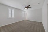 Stunning single story 3 bedroom home, upgraded throughout in gated community. Formal entry leads you into the Great Room style living area. Large living area with ceiling fan/light and very nice size dining area. Gourmet kitchen with granite counters, upgraded stainless steel appliances, microwave, pantry. Upgraded dining light fixture and island pendant lighting. All tile flooring in living area and carpet in bedrooms. Surround sound in great room. Primary bedroom is very spacious, features ceiling fan/light for your secluded private retreat. Custom walk in closet is a stand out feature. Primary bath with dual sinks, upgraded counters and lighting. Oversize walk in shower. Nice size secondary bedrooms with ceiling fans/lights. The back yard is truly a WOW factor with this home. Covered patio, large paver patio, outdoor L shaped kitchen with built in BBQ, sink, mini fridge and The Pit BBQ. Stunning easy care yard with large trees & artificial turf. Shutters throughout home. Much more.
