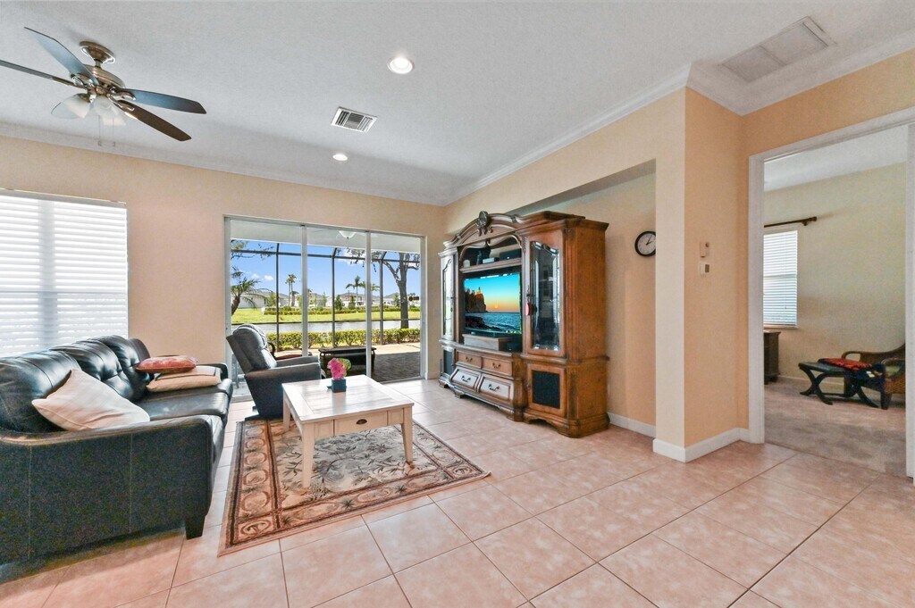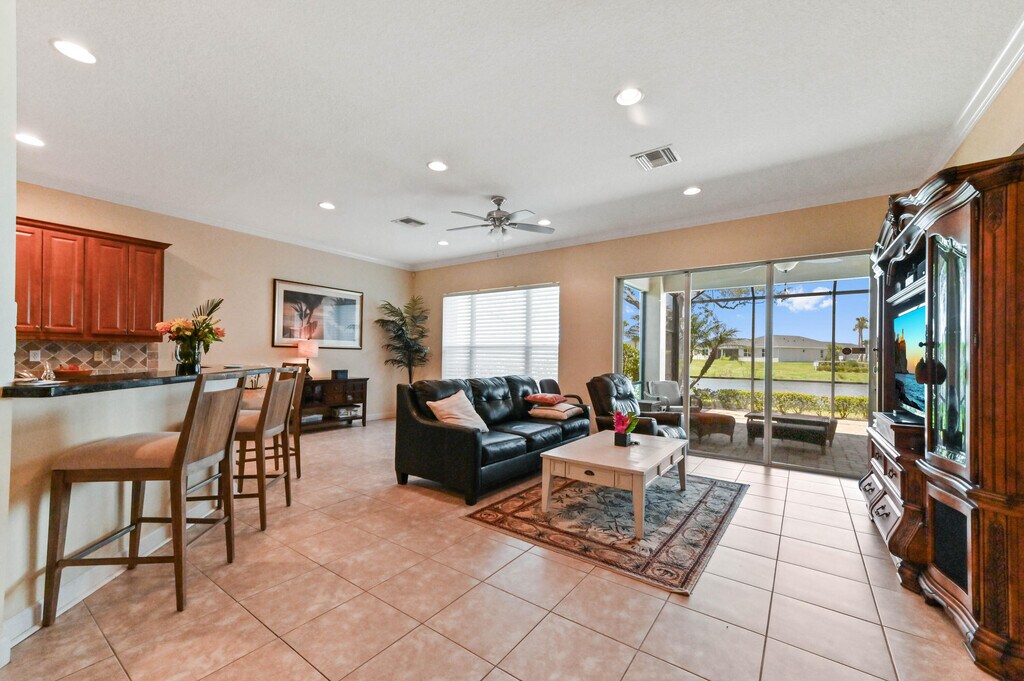 Presenting an impressive RIVIERA Model residence in the renowned PGA Village of Port St. Lucie, located at 9220 Short Chip Circle. This commendable property offers over 2100 square feet of living space, fashioned with clean lines and elegance throughout, boasting a new coat of fresh paint both inside and out. The layout of this residence caters to the needs of our contemporary lifestyle, showcasing a generous, open planned living and dining arrangement. The defining centerpiece of this area is the large, well-appointed kitchen flaunting sleek granite surfaces - a perfect setting to host and entertain, or enjoy casual meals.