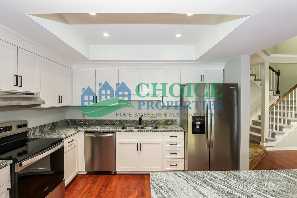 Welcome to Park Walk,a beautifully landscaped,tree-lined neighborhood tucked into the heart of SouthPark. This community is known for its charming walkability,mature trees,and friendly feel. Just minutes from Carmel Commons,Ballantyne,and major routes like Highway 51,you’ll also be within five minutes of SouthPark Mall and a quick drive to the dining and nightlife around Montford and Park Road Shopping Center. Whether you’re looking for convenience,entertainment,or peaceful surroundings,this location offers it all. As you arrive,you’ll notice the inviting curb appeal of this updated two-bedroom townhome. The front porch portico makes a perfect spot for enjoying your morning coffee,reading a good book,or spending time outside with your pet. Step inside and you’re greeted by a bright foyer with custom tile that flows into a spacious living room. Vaulted ceilings and tall windows fill the space with natural light,while a decorative only brick fireplace adds charm and warmth. The kitchen is designed to impress,featuring striking granite countertops with a black and gray finish,stainless steel appliances (including a brand-new stove and hood),modern hardware,and excellent task lighting. A breakfast nook overlooks the fenced back patio,creating a sunny spot for casual meals. The patio itself is a standout feature,offering hardscape space for outdoor dining and entertaining,plus a section of turf for easy maintenance. Open the back gate and you’ll step directly into a large green space—perfect for play,pets,or simply enjoying the outdoors. The main level also includes a private bedroom suite with a nicely sized closet and a beautifully updated bathroom. The bathroom showcases custom tile work,a frameless glass shower,and granite vanity,creating a spa-like feel for guests or family members. Upstairs,the primary suite is a true retreat. Fresh carpet and new paint create a clean,modern feel,while the oversized bedroom flows into a luxurious en-suite bath. The bathroom is highlighted by dramatic black tile flooring,a walk-in shower with subway surround and frameless doors,granite countertops,and a spacious walk-in closet. Every detail has been thoughtfully updated to combine elegance with comfort! Recent upgrades include brand-new carpet throughout,fresh interior paint,and some new kitchen appliances. The home also includes community amenities such as tree-lined streets perfect for walking and a neighborhood pool for summer relaxation. This is a move-in ready home in one of Charlotte’s most desirable locations,blending comfort,style,and unbeatable convenience. Come see why Park Walk is the perfect place to call home. Once the application is accepted lease and sec deposit must be signed and paid within 24 hours or home will continue to be shown. $150.00 admin fee due at lease signing. Home professionally cleaned before new tenant moves in. All CP residents are enrolled in a Resident Benefits Package. More details upon application.