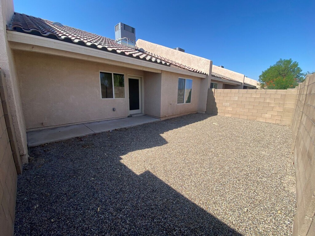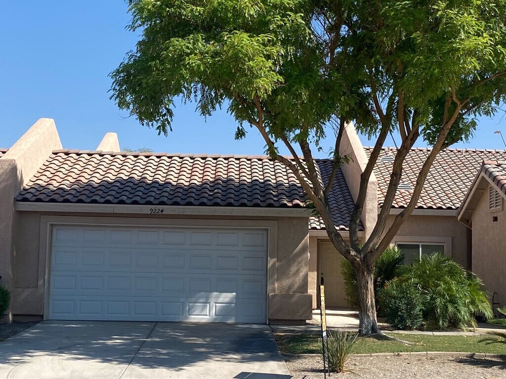 3 bedroom, 2 bath Sunset Mountain Villa with open floor room featuring living room, dining room and kitchen with vaulted ceilings. Roomy, open kitchen with pantry. Master bedroom has a walk in closet. French door leading to covered rear patio area with desert landscaping. 2 car garage.