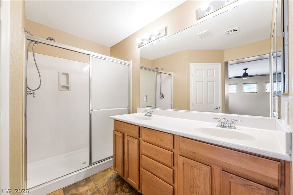 Discover a stylish two-story home in the heart of Southwest Las Vegas that blends comfort, functionality, and a prime location. This thoughtfully designed residence features an open and inviting layout that flows effortlessly for both everyday living and entertaining, while the spacious bedrooms and multiple en-suite baths provide privacy and convenience for everyone. Natural light fills the interior, creating a warm and welcoming atmosphere, and the low-maintenance backyard with block wall fencing offers the perfect setting to unwind or host gatherings. With a two-car garage and easy access to nearby shopping, dining, parks, and major roadways, this home delivers the ideal balance of modern living and everyday convenience.