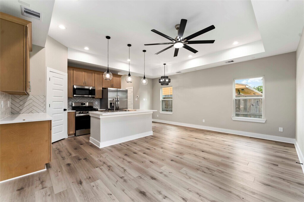 This 3-bedroom,2.5-bath townhome is located just minutes from the Texas Medical Center. The home features an open layout,quartz countertops,stainless steel appliances,and plenty of cabinet space. The primary bedroom includes a walk-in closet and private bathroom. Enjoy a fenced backyard,one-car garage,and in-unit washer/dryer connections. Convenient access to major highways,shopping,dining,and medical facilities. MLS# 75952022