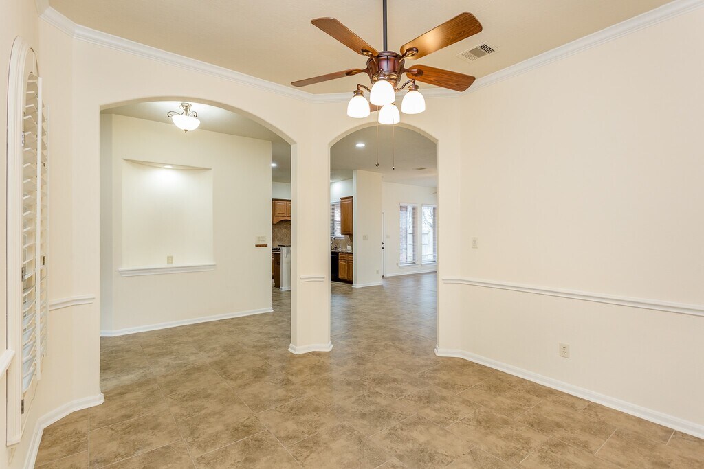 Step into comfort and convenience in this beautifully updated ONE STORY 3/4 bed/2.5 bath home! Upgrades include: plantation shutters,cast stone fireplace,granite in kitchen and primary bath and black GE appliances with 5 burner gas cooktop. Home has been freshly painted and features an OPEN FLOOR PLAN and tile flooring throughout,this home is as stylish as it is low maintenance. Private office located at the font of the home. Enjoy the privacy of NO BACK NEIGHBORS and relax under your COVERED PATIO! Perfect for unwinding or entertaining. Ideally located near major highways,you'll love the quick and easy access to all parts of the city. The Fall Creek Community has wonderful amenities to include 2 swimming pools,splash pad,parks,tennis courts,fitness center and so much more! Don't miss your chance to rent this move-in ready gem! MLS# 29024315
