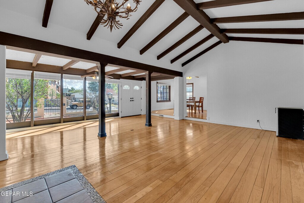 Classic Kern Charm! Enjoy the timeless appeal of this beautiful Colonial-style home,just a short stroll from local schools,shops,and Madeline Park. This residence blends historic character with modern comfort,featuring elegant hardwood and tile floors throughout. The main living area showcases stunning exposed wooden beams,floor-to-ceiling windows,and double entry doors that fill the space with natural light and warmth. The fenced front yard provides both privacy and curb appeal,perfect for relaxing outdoors or entertaining guests. Experience the heart of Kern livingwhere classic architecture meets everyday convenience.