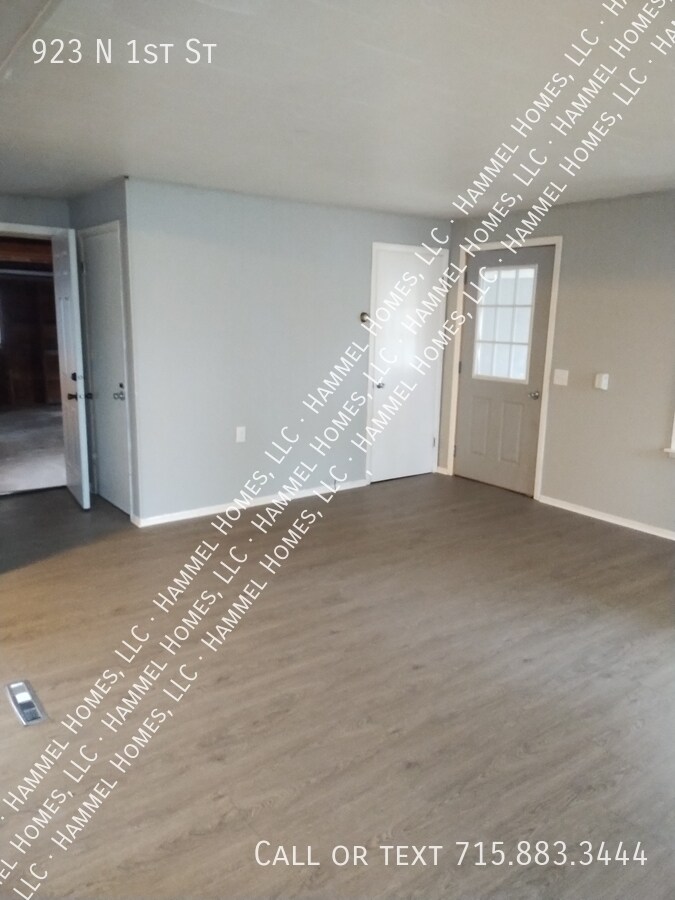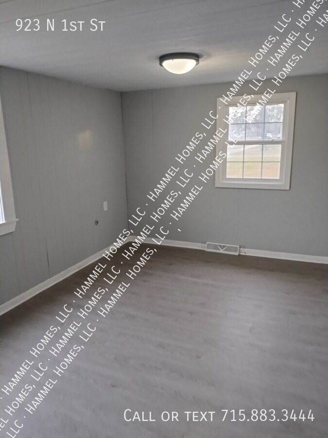 Two-bedroom home in Bruce, Wisconsin. Located just half a block from the school, this home sits in a quiet residential neighborhood and features a large backyard with plenty of space for outdoor activities. The oversized one-car garage offers extra room for storage or a workshop, and there's additional parking available on the driveway or even in the backyard if needed. Inside, you'll find closets everywhere and a basement space suitable for additional storage, a man cave, or crafting area. The home has been extensively updated with all new flooring and fresh paint throughout. Many rooms have new doors, plus a brand-new entry door and garage door. The kitchen has been refreshed with a new sink, faucet, stove, and refrigerator. The bathroom has a new toilet, vanity, and medicine cabinet, along with new fixtures and hardware throughout. Also includes a new washer and dryer. Heating is natural gas with a forced-air furnace. There is no central air, so residents will need to bring their own window units for cooling. Available immediately. Resident pays all utilities. Minimum income requirement is three times the rent. No initial application fee however, approved applicants pay a fee of $35 per adult for background screening. Up to two pets are allowed for an additional $35 monthly fee. This one is truly move-in ready—new, new, new, new, new. Snap it up before it's gone. Some photos are virtually staged.