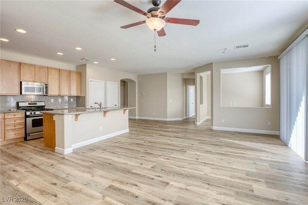This great home in the Northwest boasts 3 bedrooms, 2 bathrooms, a den & has been freshly renovated just for you! New paint, New Luxury Vinyl Plank Flooring & new carpet! It's almost brand new! The beautiful open kitchen has a large island, granite countertops, stainless steel appliances & a large pantry. The primary bedroom has a private slider out to the backyard, a very nice en-suite with a separate tub/shower, double sinks & a huge walk in closet. The backyard has desert landscaping & a shaded patio cover to enjoy all year round. Schedule your showing today!
