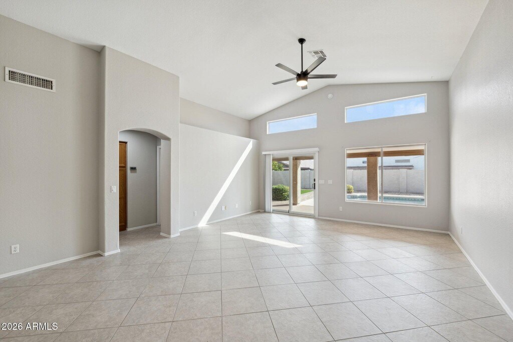 Wow,this property just got a face lift and it looks amazing!!! Stunning home with new flooring,fully painted,sparkling pebble tech play pool,faux grass,No HOA,3 bedrooms,2 bathrooms plus a really large den/office,newer AC,Updated fans,updated appliances with washer and dryer included. This property is ready for you. Home has high ceilings and is light and bright. Kitchen and Family room off the back slider. Large bedrooms have a nice amount of storage with gorgeous shutters and fine touches. The property located in top rated Peoria School district,walking trail down the street,full length patio on back for entertaining. Close to schools,restaurants,easy access to the freeway and so much more!! Move in ready for you,come,show and rent today!