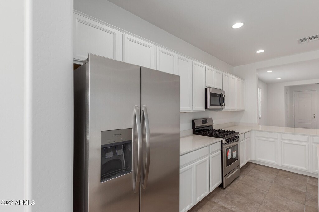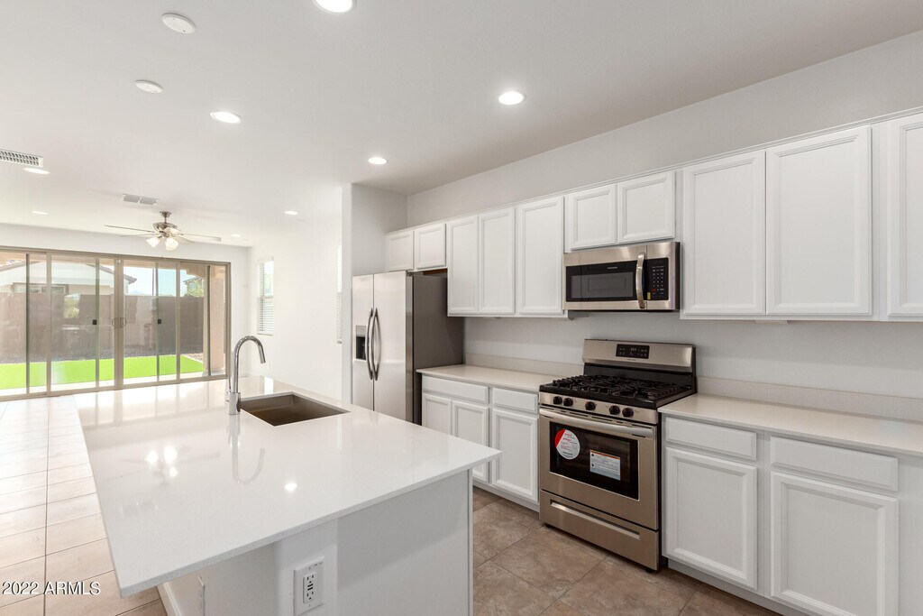 Beautiful corner-lot home featuring 3 bedrooms and 2 bathrooms in the highly desirable,gated community of Western Enclave! This newer-construction residence offers a bright,open floorplan with a spacious dining area that seamlessly flows into the gourmet kitchencomplete with stainless steel appliances,quartz countertops,a kitchen island,and a convenient breakfast bar. The kitchen opens to a generous living room highlighted by a massive glass slider that leads to the backyard.The primary suite includes dual sinks,a large walk-in shower,and an expansive walk-in closet. Both bathrooms feature sleek quartz countertops that complement the kitchen's modern design. Washer and dryer are included for added convenience. Enjoy the low-maintenance backyard with a covered patio,artificial turf,and thoughtfully designed landscapingperfect for both relaxation and entertaining. All of this just minutes from the 101,Westgate Entertainment District,and State Farm Stadium.