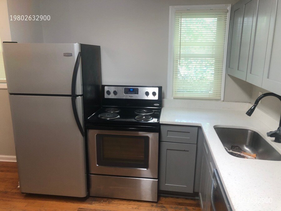Beautiful 4-bedroom/2-bath home in the trendy Camp North End area. The bathrooms have tile flooring and shower surround, the living areas and kitchen have original hardwood floors and the bedrooms have new hardwood-style laminate floors. The kitchen is all new with gray shaker style cabinets, quartz counter tops and stainless steel appliances. The bedrooms are all a good size with ample closet space. The living/dining rooms are open and the home has a lot of windows and natural light. The interior of the home is freshly painted in a neutral gray. Full size washer/dryer connections. This is a great house in a convenient location to Uptown. Please note, we never advertise on Craigslist or Facebook