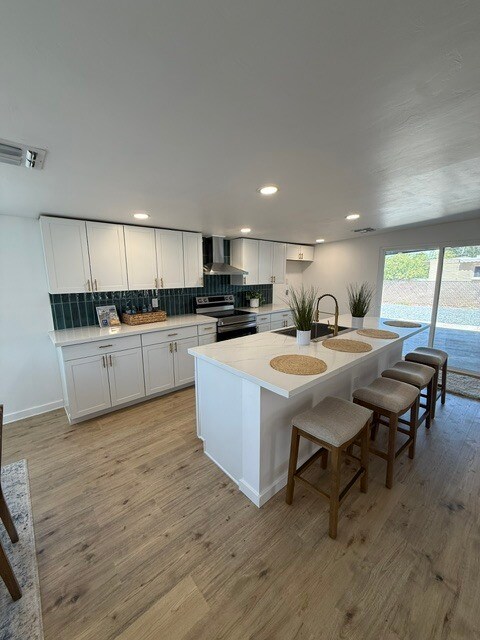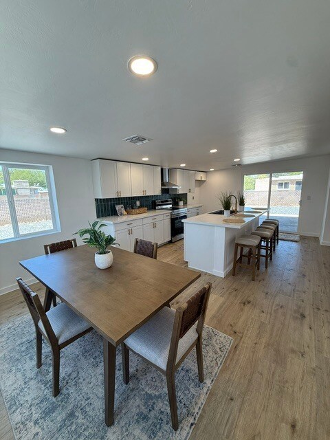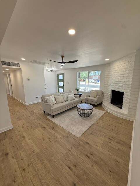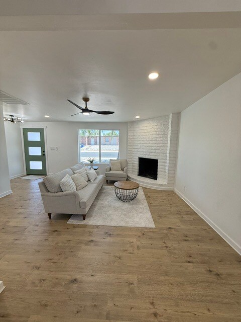 AVAILABLE NOW! This beautifully remodeled home on Tucson's east with four bedrooms, two bathrooms and 1812sqft of living space. Featuring a living room with fireplace, dining room, wood flooring and tile throughout. The eat-in kitchen boasts, pantry closet, an island with dishwasher, new cabinets, electric range with hood and gorgeous backsplash tiles. The owner's suite highlights a custom walk-in shower with half glass wall, dual vanity sinks, dual mirrors and double mirrored walk-in closet doors. Additional features include new celling fans in all the bedrooms, washer/dryer hooks and single car garage with additional storage. Completely fenced backyard with covered patio and low maintenance landscaping. Conveniently located close to Davis Monthan Airforce Base, Jesse Owen's park, Rolling Hill's Golf course, dining and shopping. Deposit equal to one month's rent and pets upon owner approval with $200 non-refundable pet fee. Contract Rincon Ventures at to schedule an appointment. You can also complete a self guided tour by visiting our website clicking on the rently button, register through the rently website and they will provide a code to enter the home at your convenience. A $40 application fee applies to adults 18 years of age or older and MUST VIEW BEFORE APPLYING. NO ZILLOW APPLICATIONS ACCEPTED. This property allows self guided viewing without an appointment. Contact for details.