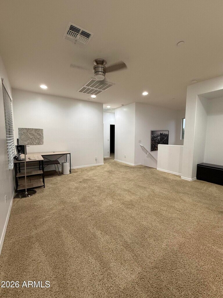 Charming 3 bedroom,2.5 bath with HUGE upstairs loft! Located in Travata,this home is on an end corner lot! This spacious home has 18'x18' diagonal tile throughout with the exception of the the bedrooms and loft. In the kitchen,upgraded stainless steel appliances,maple cabinets,stunning granite countertops and full height mosaic backsplash. The patio has a full-height sliding door and pavers in the enclaved patio space. The 2 car garage is rear entry and street parking for visitors! The community pool is open year round! Located right off Bell and the 101,come and see it!