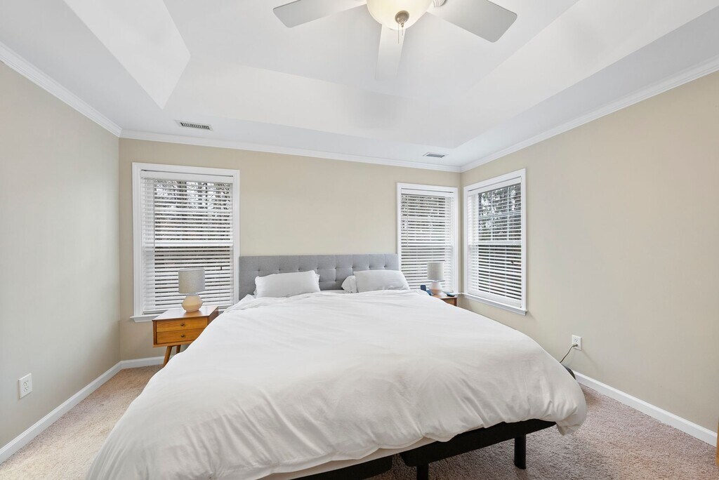Welcome to 9249 Shallcross Way, a charming 4 bedroom, 2.5-bathroom home located in the desirable city of Raleigh, NC. This lovely house offers a range of amenities that are sure to enhance your living experience. Step into the spacious fenced-in backyard, perfect for outdoor entertaining and providing a safe space for your furry friends to roam. Storage shed has electrical and fan. Lawn equipment provided with conditions. Primary bedroom features an ensuite and large walk-in closet. The kitchen boasts beautiful acrylic countertops, adding a touch of elegance to your cooking experience. With a 2-car garage, you'll have plenty of space for parking and storage. Located in a convenient neighborhood, this home provides easy access to local amenities, schools, and parks. This home offers a comfortable and functional living space that you'll be proud to call home Contact us today to schedule a tour and see for yourself.