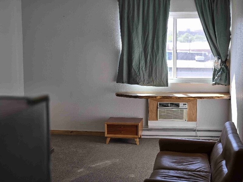 Property Id: 1585922 Newer cabinets, island, walnut counters, sinks, cork flooring and carpet, bathroom tile, window, ac unit, baseboard heater, ceiling texture, paint. Pet Free and Non-smoking building All utilities except internet included in rent Free laundry room available to tenants One personal parking spot in private parking lot, street parking for guests Spectrum high-speed internet can be connected 4th floor window faces sunset, downtown, 4th of july fireworks, windmills on horizon Elevator Secure building Concrete walls and floor provide a quite space Short walk to downtown restaurants, shops, venues. Partially furnished, ideal for one person or a couple with not a lot of belongings.