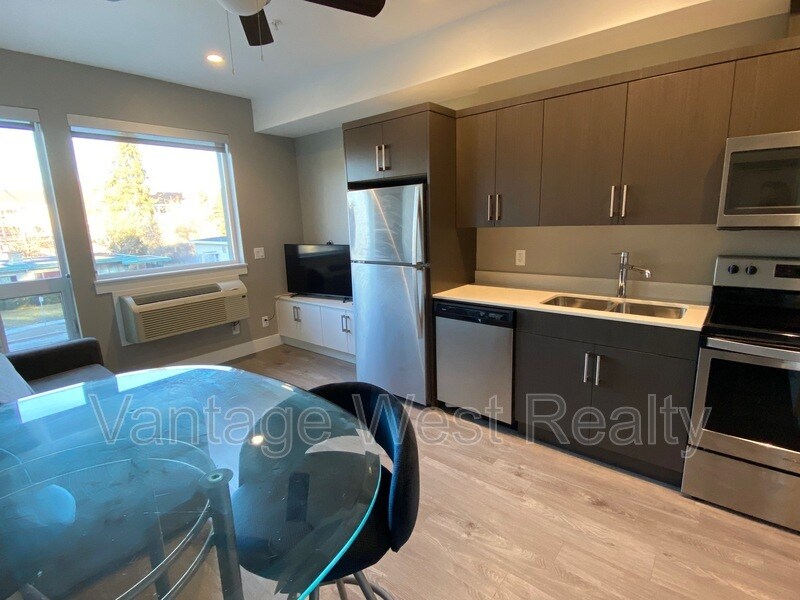 Beautifully designed, furnished studio at 925 Leon Avenue - Cambridge House. This north-facing, 313 sq ft condo features upgraded cabinetry storage solutions to maximize functionality. Conveniently located on Leon Ave, between Ethel Street and Gordon Drive. Close to shopping, post office, bowling alley and much more at Capri Centre Mall and within walking distance to all the downtown shops, restaurants and more. Residents of Cambridge House enjoy access to premium amenities including a fully equipped exercise room, an immense social lounge with many sofas, a large-screen TV, fireplace, free WiFi, ping-pong table, and restroom. The landscaped courtyard offers space for outdoor games, a BBQ area, and plenty of space to relax. Blue box smart lockers are available as added security for receiving parcels. This rental also includes one secure parking stall for a small car. - Studio, 1 Bath - Condo - $313 sq ft, Built in 2018 - Available September 1st - $1400/month + Utilities - Fully Furnished - Full Size Kitchen Appliances - Private, Euro-Style Washer-Dryer Combo - 1 Designated Parking Spot - Common Lounge - Exercise Room - Shared Outdoor BBQ area - Strata move in fee: $200.00 - Blue Box Smart Lockers for Parcel Delivery - No Smoking/Vaping, FIRM - No Pets, FIRM For more info or to view, text 308 Leon to (NO CALLS PLEASE). This property is marketing by Lindsay Anderson Personal Real Estate Corporation with Vantage West Realty Inc on behalf of the property owner.
