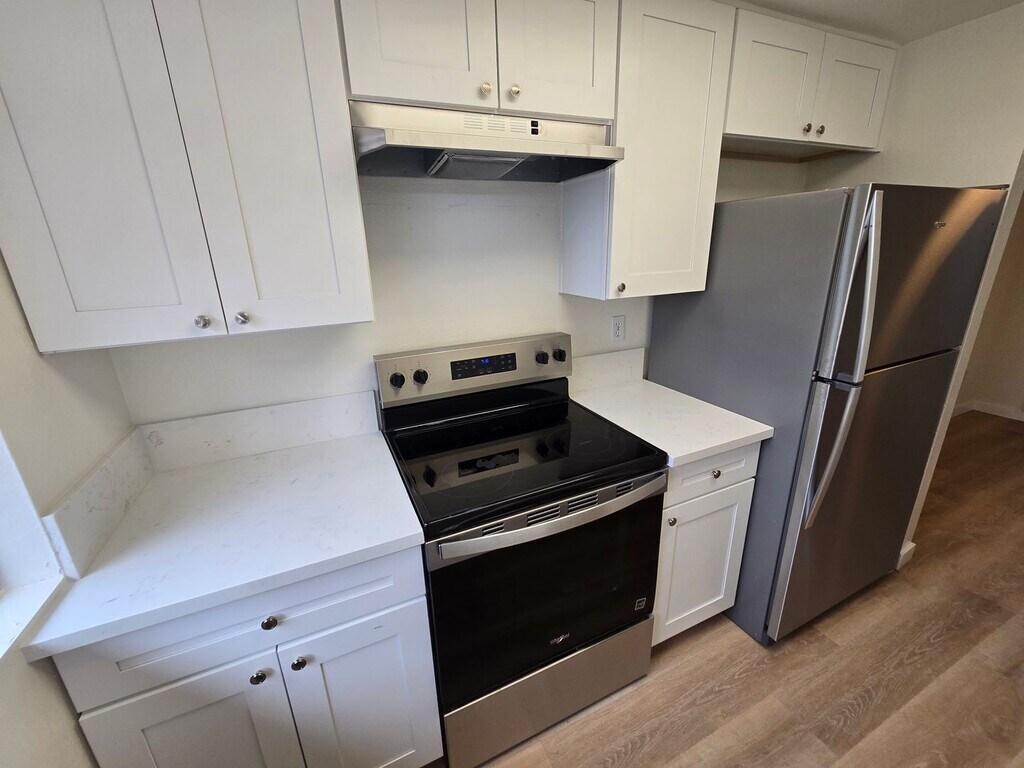 882 sq. ft. in a peaceful, park-like community with tall trees, green lawns, and beautifully maintained grounds. The oversized living room offers a tranquil view of the landscaped surroundings, creating a bright and inviting living space. The unit features new laminate flooring throughout and a fully renovated modern kitchen with brand-new cabinets, sink, fixtures, and stainless steel appliances including refrigerator, range, and dishwasher. The bathroom has also been tastefully remodeled. The spacious primary bedroom includes a ceiling fan, and the entire unit has been freshly painted. Enjoy outdoor living with a large, fenced private patio—perfect for relaxing or entertaining. Additional features include: 1-car private garage Forced-air heating and air conditioning Lease Terms: No pets 1-year lease No cosigners Call Northcutt Properties, Inc. at for appointment. FREQUENTLY ASKED QUESTIONS: *What is the Application Fee? $35/adult (18 yrs. and older) May pay online. *Can we apply on-line? Yes. Click the property and follow the prompts. *What do I need to submit with my application? The application itself, the application fee, and proof of income. This is typically 2 recent pay stubs or, if self-employed, 3 months recent personal bank statements. *How important is good credit? VERY important. *How long does it take to get an answer? Usually 2-3 days. If accepted, you will be expected to sign the lease and pay your security deposit online within 24 hours of being approved. Rent must begin within 2 weeks maximum from the date you are approved.