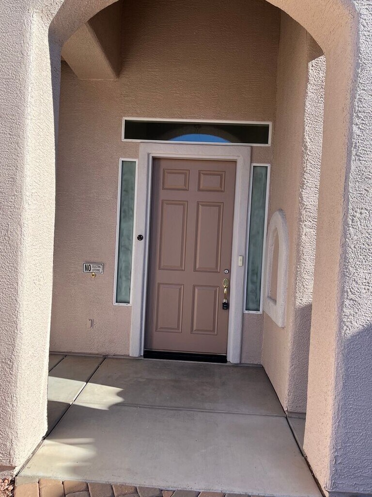 Beautiful, spacious 3 bedroom, 2.5 bath home tucked away on a quiet cul-de-sac in the elegant, gated community of La Privada at Verde Santa Fe. Split bedroom floor plan with spacious master suite including a sitting area, open kitchen with island, breakfast bar, newer stainless appliances with a raised dishwasher for easy loading & unloading, and a huge walk-in pantry. Sliding glass doors out to the rear covered patio from the kitchen. Convenient half bath in the hallway leading down to the laundry room, 2nd & 3rd bedrooms, and the guest bathroom. Master bath includes separate shower, deep soaking tub, vanity with double sinks, and 2 separate walk-in closets. Large corner lot, easy care landscaping & attached 2-car garage.