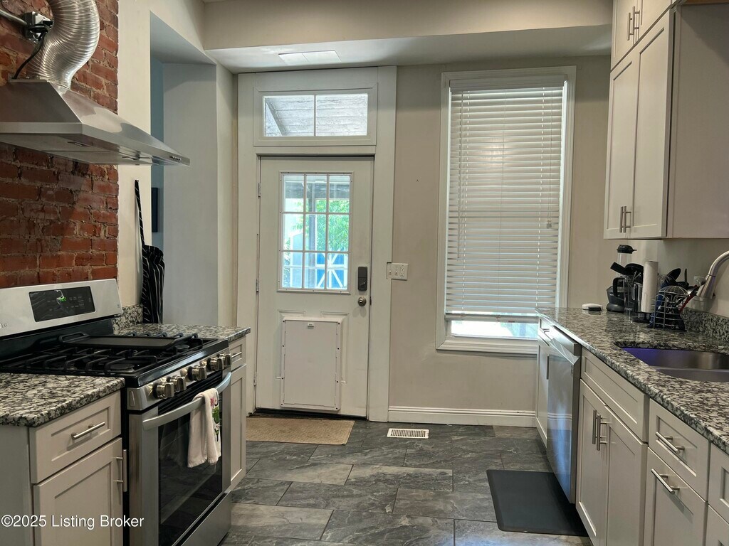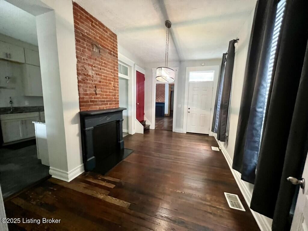 This 2BD/2BA home has kept it's charm with original refinished hardwood floors and exposed brick throughout. Walking through the front door,you will enter into the spacious living room that boasts a brick fireplace. Next is the large walk-through first floor bedroom. This level also features a large dining room that leads to an updated kitchen equipped with granite countertops,custom cabinets,and stainless steel appliances! There is also a full bath with washer/dryer hookups. A wrap around staircase from the dining room leads to a small living room and desk space. Attached is a large full bathroom with beautiful tile and a tub for families. The Primary bedroom (featuring more original brick) completes the 2nd floor. Bonus!! There are 2 additional parking spaces in rear of home.
