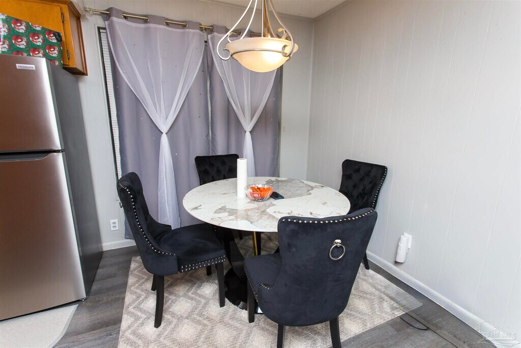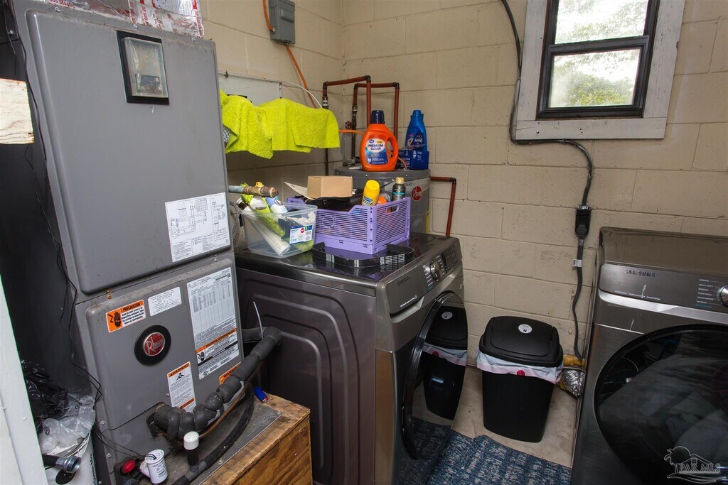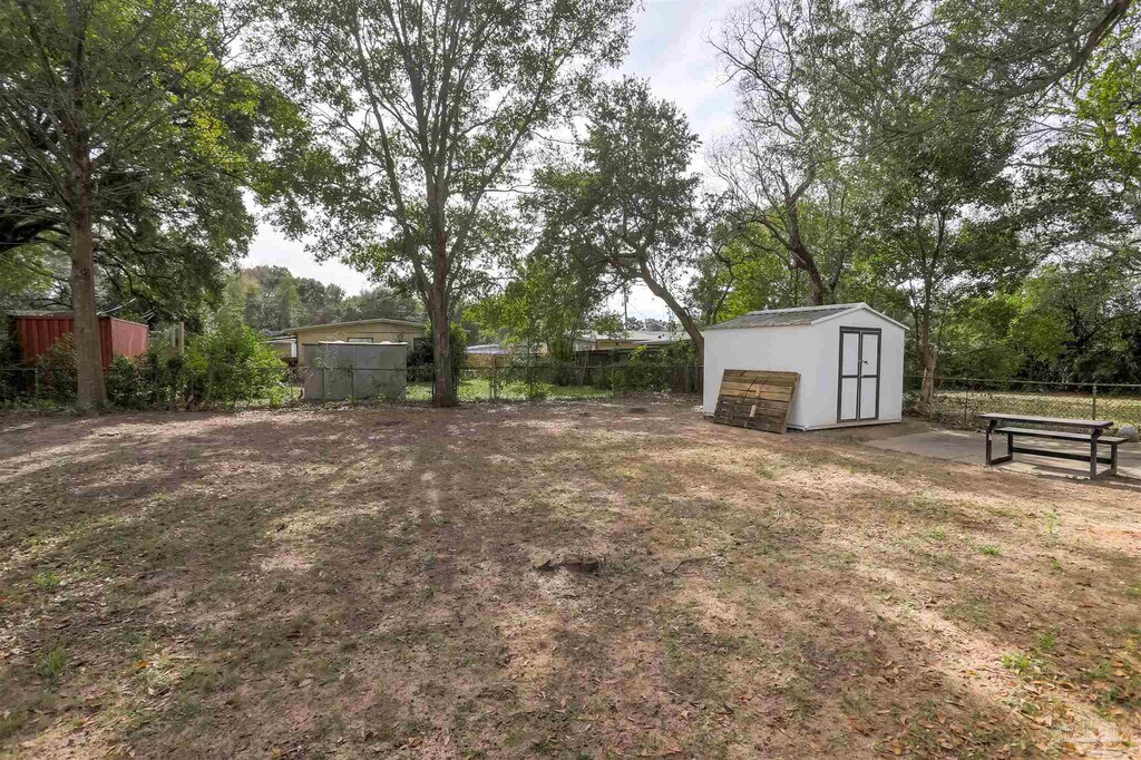 This updated Pensacola home features a spacious living room,dining area,and versatile flex room,along with three bedrooms and a full bath. Recent updates include a new roof,flooring,stainless steel appliances,and fresh exterior paint. A large laundry/storage room adds convenience. Enjoy a fenced backyard with a concrete patio and a professionally built storage shed. Ideally located near the new Baptist Hospital,Cordova Mall,Pensacola Airport,and area dining. Hurricane improvements may offer insurance discounts. Recent updates: Roof (2017),HVAC (2020),Water heater (2023),Exterior paint (2024),Appliances (2025).