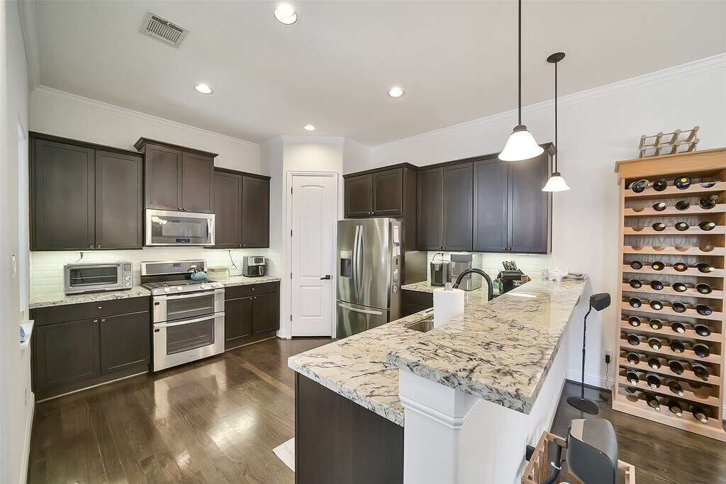 925 West 19th Street is a New Orleans inspired free standing home in the highly desirable Heights neighborhood. Built by Drake Homes,the home offers soaring ceilings,luxurious hardwood floors,and crown molding throughout the entire home. The kitchen features stainless steel appliances with a double oven,granite countertops,breakfast bar and a walk-in pantry. Each bedroom in the home has it's own ensuite bath and walk-in closet. The spacious primary suite is paired with a gorgeous bathroom showcasing a jetted garden tub,oversized shower and generous closet space. Added upgrades include an entire-house water softener and water filtration system,EV charger outlet,generator interlock,and an exterior outlet for a portable generator. Extended side yard is fully fenced. For further security,the home is located in a gated community,within walking distance to Roast & Brew,Bungalow Heights,Wicklow Heights,Cedar Creek,and H-E-B! MLS# 87161925