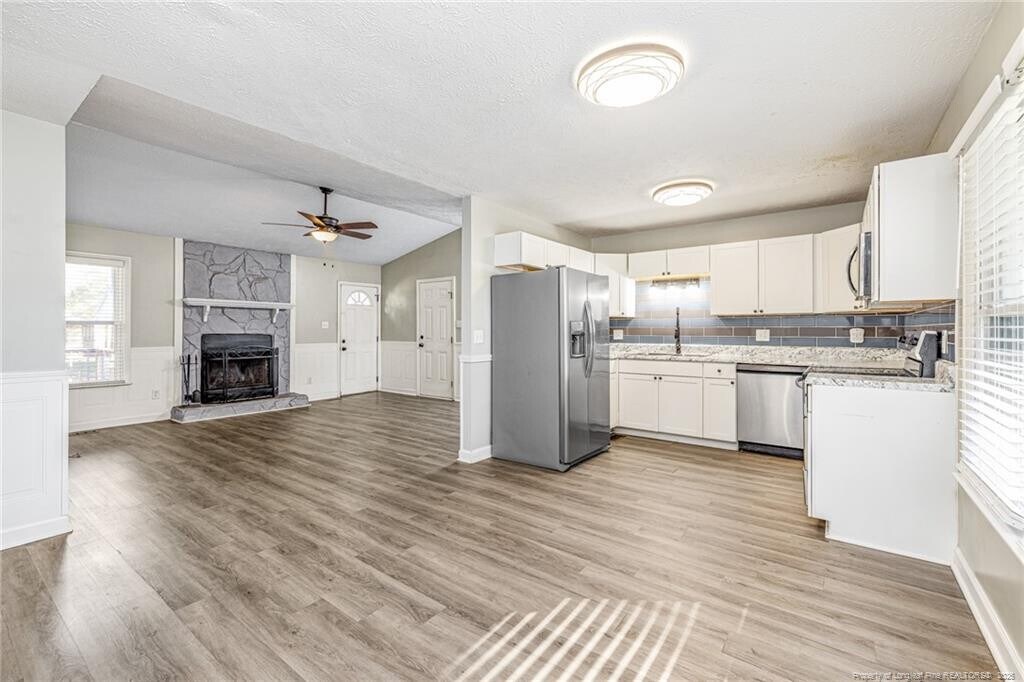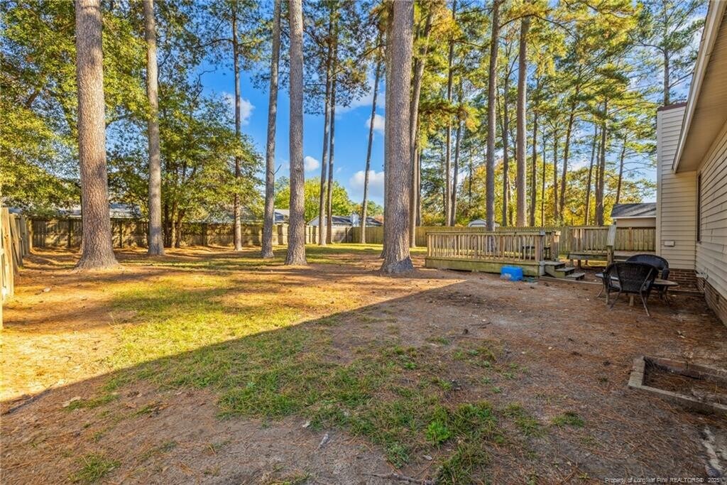 WELCOME HOME- COME ON IN AND TAKE A STROLL THROUGH THIS IMMACULATE 3-bedroom 2-bath Ranch Style home with Single car garage. This home has plenty of space with LVP flooring throughout the main living area and carpeted bedrooms and tile in renovated primary bathroom. The kitchen features stainless-steel appliances and is open to the living-room. WOW- LARGE FENCED IN BACKYARD PERFECT FOR ALL KINDS OF FUN AND ENTERTAING! Large and separate smaller deck with s small fire pit with chairs. Close to Ft. Bragg, shopping centers, restaurants, and schools, are conveniently close and makes this home a must see! BOOK YOUR SHOWING TODAY! One Small dog allowed with owner approval. No Cats. Fireplace for show only, non working. Washer and Dryer area located in garage. SUMBIT APPLICATION