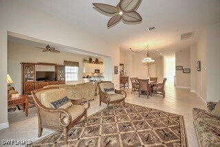 Beautiful & Spacious Second Floor Home with lovely lake and golf course views. GORGEOUS DESIGNER FURNITURE is included with this spacious and bright END UNIT. There are three large bedrooms. primary has a king bed,and each of the guest rooms have queens. The great room and family room open to the bright kitchen,a large and relaxing lanai,and an attached two-car garage. This home offers you three bicycles and beach equipment if you decide to venture out. You can choose the Social Club transfer and enjoy the resort style pool and spa amenities and world class gym facilities that the Fiddler's Creek community offers including award winning fine dining restaurant and more! Or you may choose to lounge by the beautiful Laguna Village pool. Laguna is perfectly situated just about halfway between the World-Famous 5th Avenue of Naples and the white sand beaches of Marco Island,a perfect location for all Naples rentals.