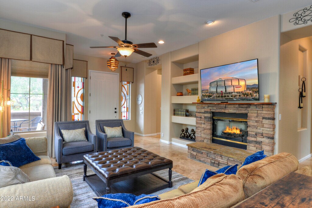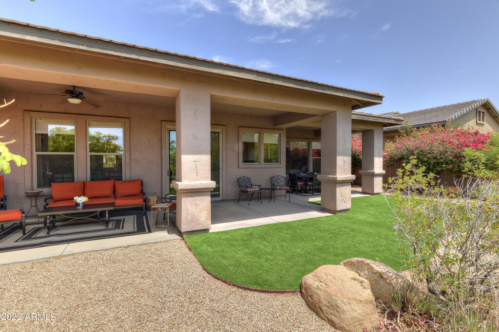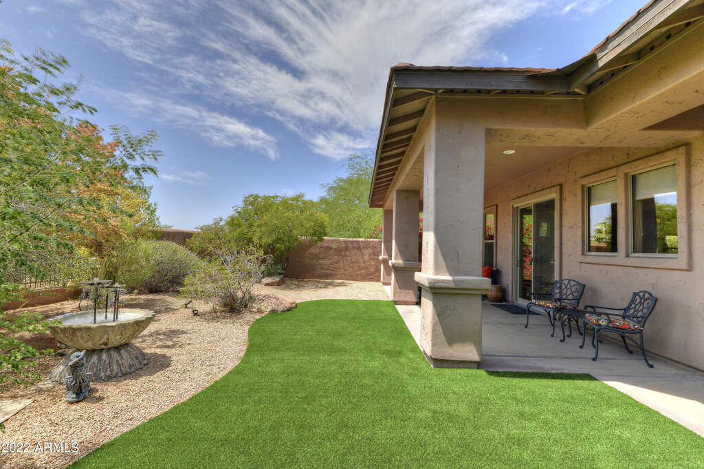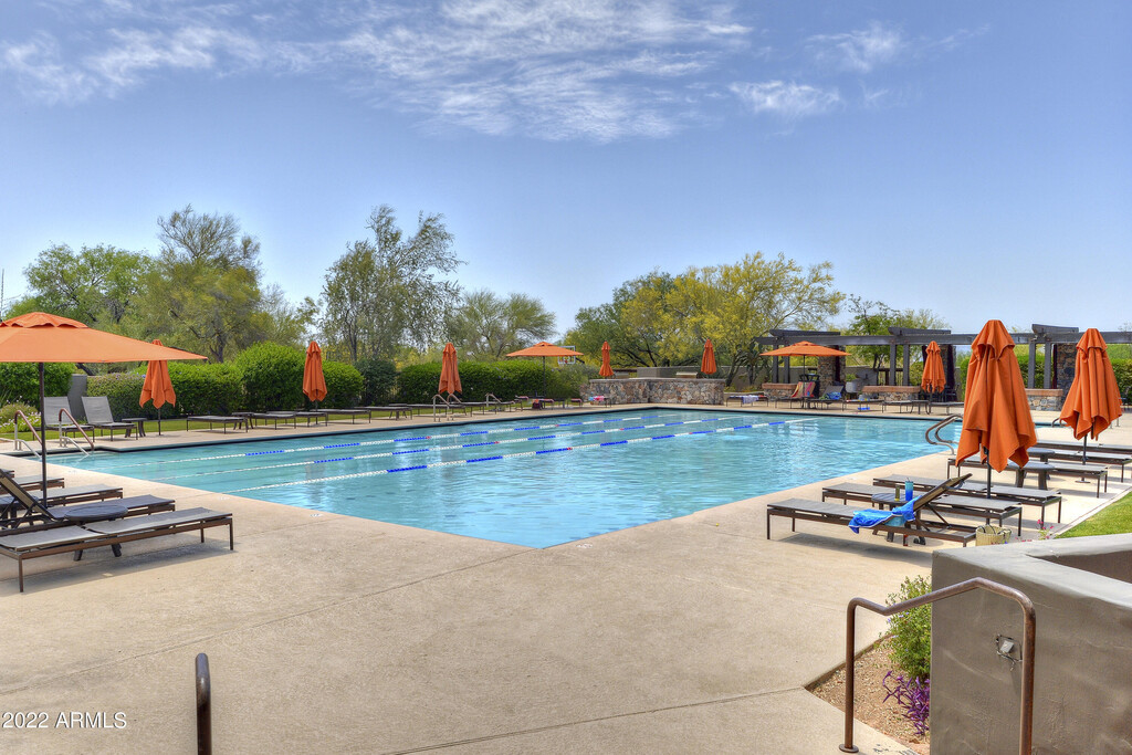 RENTED - Until April 2026 NEW Kitchen-Granite Counters/2 tone Cabinets/2 Ovens-6 Burner Gas Viking-Microwave-S/S Appliances-Wine Fridge-2 Beverage Drawers. LOCATION! LOCATION! Min. to Waste Management Golf Open,Barrett Jackson Car Show,Arabian Horse Show,Scotts. Airpark-30 Min. Walk to Market Street (Starbucks,Safeway-Grocery Store,7+Restaurants/Wine Bar & Shops)-5 Homes from Community Center (2 Pools-Heated,Fitness Center-Yoga,Tennis Couts,Pickleball,Basketball,Playground & 13 miles of Trails- 3 Bedroom,2 Bathroom-Travertine Floors,Vintage Reclaimed Barnwood Flooring in All Bedrooms. Custom Window Coverings,Remodeled Bathrooms w/ Granite Counters. Private Lot w/Water Feature,Synthetic Grass,2 Shaded/Covered Patios (Front & Backyard),McDowell Mountain Views