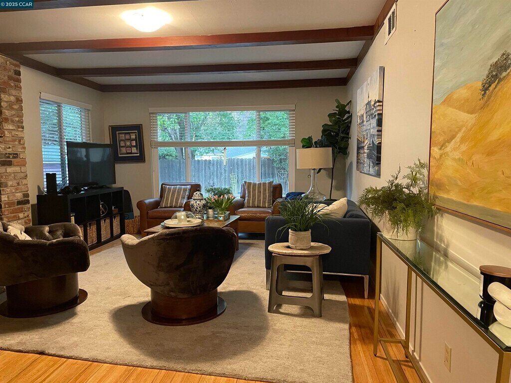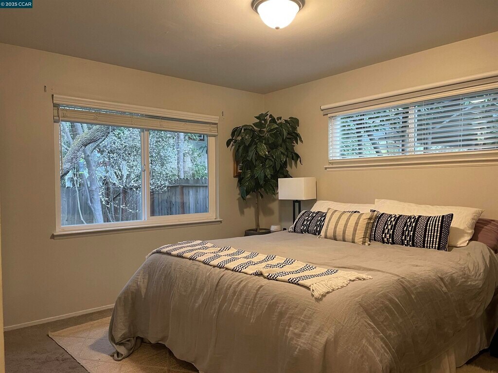 Charming one level ranch home on quiet cul-de-sac. Walk to Lafayette's lovely restaurants,shops,Trader Joe's,BART! Sunny and light,with sliding doors from family room to private fenced back yard with patio and lawn. Updated chef's kitchen with stainless steel appliances including French door refrigerator and new Jennair range. Three inviting bedrooms including primary with ensuite bathroom. Extra office room in garage for working from home or music practice! Washer and dryer included. New furnace/AC. Apply with RentSpree