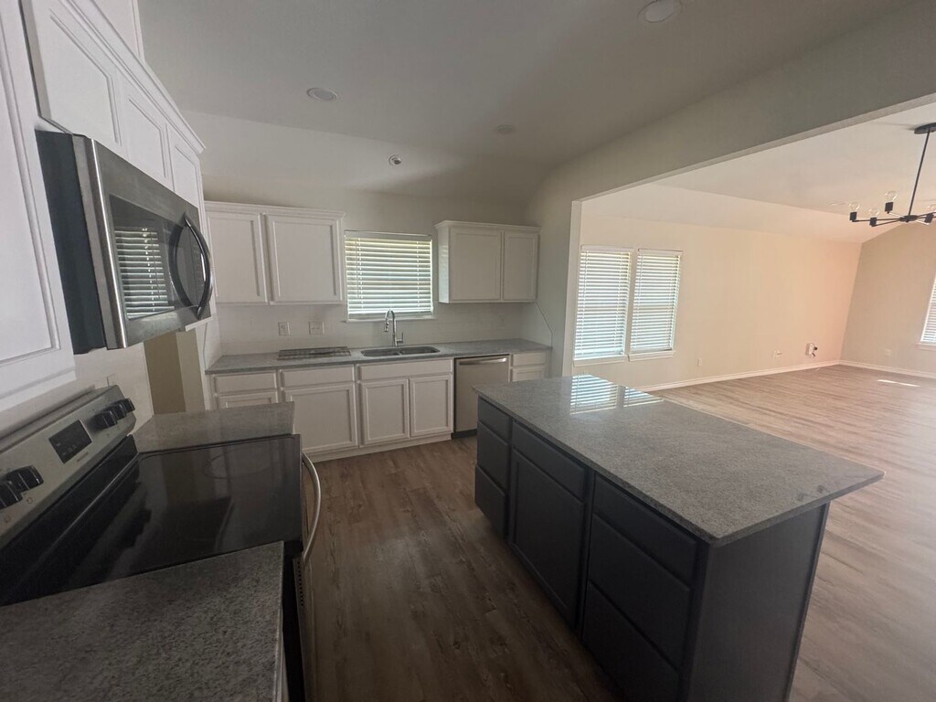 Super cute and updated 3 bed, 2 bath home boasts tons of room, walk in closet, kitchen island and open concept living area.