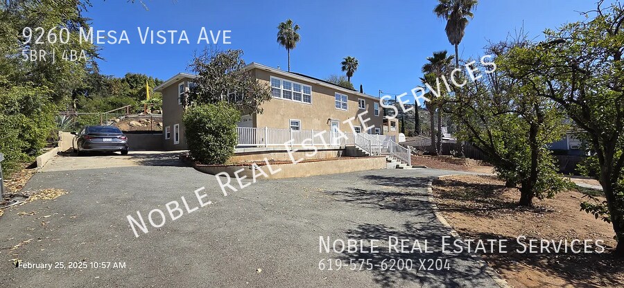 4595.00 Dogs OK Cats OK Pets Ok (Breed Restrictions Apply) No Yes Deposit: $4595.00 **On Approved Credit** Wonderful 5-bedroom, 4-bathroom home located in a great Mount Helix neighborhood! This unique property is set up like a duplex. The first floor features 2 bedrooms, 2 full bathrooms, a full kitchen, a stackable washer/dryer, and a mini-split A/C unit, with a separate entry. The second floor offers 2 bedrooms and 2 full bathrooms, plus a laundry room that can be used as a third bedroom. The large master bedroom includes an upgraded bathroom with a tub and shower combo. There is also a spacious living and dining area, a gourmet kitchen, and access to a patio and backyard. Additional features include a 2-car attached garage and a long driveway on the side of the home, providing ample parking for multiple cars, RVs, boats, and more. A solar system is in place to save you on electric bills. This property is perfect for large, extended, or multi-generational families! Tenant pays for all utilities. (**If no showtimes are available, don’t worry! Go ahead and submit your info and our automated system will let you know when showtimes become available). Also, please be sure to click on the 'Apply Now' button to see all of our requirements and how we work! SS 04/15/26 EB No Noble Real Estate Services www.NobleProperties.info 1371 Presioca St. Spring Valley CA 91977 Yolanda, Emily, Alex, or Sam Option #1 2026/5/7 Balcony/Patio/Deck Cozy Gas Fireplace Parking Stainless Steel Kitchen W/D In Unit