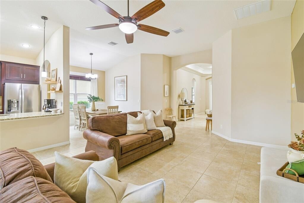 OWNER SAID: RENTED — SO NOW THIS EXCEPTIONAL HOME IS NOW AVAILABLE FOR LEASE OR LEASE-PURCHASE. Welcome to effortless luxury living in Gardenia Glen at Connerton,one of Land O’ Lakes’ most desirable gated,family-friendly communities — with lawn care included for true maintenance-free living. This meticulously maintained Taylor Morrison Fairmont III (Elevation B) offers 3 bedrooms,2 baths,and a 2-car garage,blending thoughtful design with upscale finishes. A charming front porch sets the tone,inviting you to relax and enjoy the neighborhood atmosphere. Inside,a grand entry opens to 18” tile flooring,soaring tray ceilings,and a bright,open-concept layout ideal for both entertaining and everyday comfort. The chef-inspired kitchen features 42” upgraded wood cabinetry,granite countertops,a stylish tile backsplash,and LG stainless steel appliances,including a brand-new,never-used dishwasher and a digital LG refrigerator. A cozy breakfast nook completes the space. The spacious primary suite is a true retreat,showcasing tray ceilings,dual walk-in closets,and a spa-like ensuite bath with a large walk-in shower,dual granite vanities,and refined finishes throughout. Step outside to the extended,covered,and screened lanai,overlooking a lush,manicured lawn,mature landscaping,and a fully fenced backyard — perfect for morning coffee,evening gatherings,or peaceful relaxation. Additional upgrades include:Tankless gas water heater,Touch-close blinds,Pre-wiring for alarm system,Ceiling fans in every room. Connerton offers a resort-style lifestyle unlike any other. This master-planned,self-sustaining community spans over 1,000 acres of preserved nature and features shopping,dining,multiple schools,and a municipal center. HOA fees are just $272/month,covering lawn maintenance and access to world-class amenities.Residents enjoy a spectacular clubhouse with: State-of-the-art fitness center,Resort-style Olympic-size pool & water park,Tennis,basketball & beach volleyball courts,Café,meeting rooms & catering kitchen,Outdoor amphitheater for sunset concerts,Top-rated schools are right within the community,including Connerton Elementary and Pine Crest Academy,a highly regarded charter school. Community events like food trucks,live music,and family activities create a vibrant,connected lifestyle — all just minutes from shopping,medical centers,major highways,and entertainment. This is more than a home — it’s a lifestyle opportunity. For the lease-purchase option acceptable terms have to be agreed. Schedule your private showing today and start living the life you deserve. MLS# TB8465204