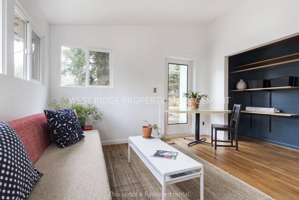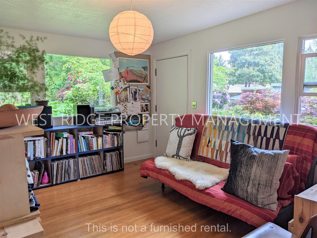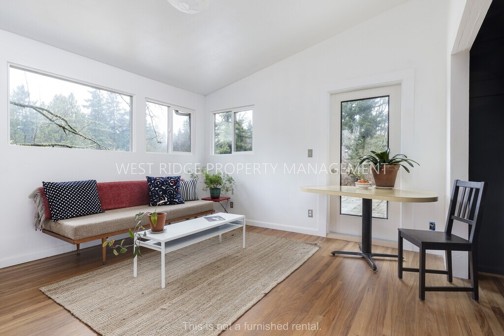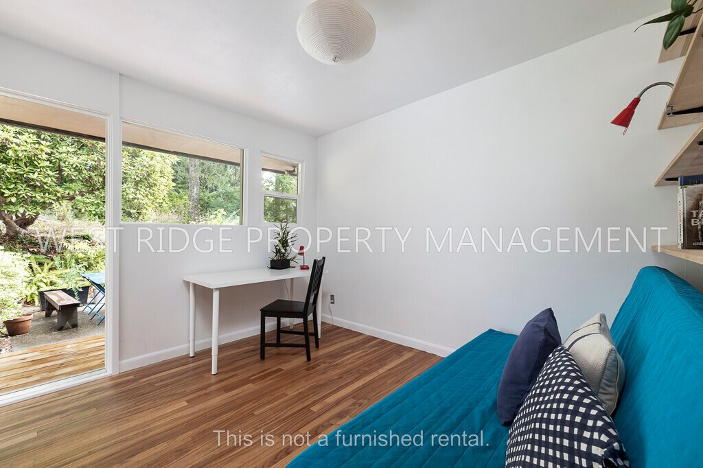 Enjoy the peace and quiet of the natural area surrounding this 2-story, mid-century modern home in the Collins View neighborhood. Large sweeping windows allow for an abundance of natural light in every room. Take in nature along the private walking paths around the property with over 20 mature trees in this park-like setting! The main level features 3 bedrooms, 1 bathroom, hardwood floors and a spacious living room design. The lower level, a large family room, bathroom, laundry room and storage room. Washer/dryer Patio Carport Off Street Parking Deck EV charger Dishwasher Storage space Hardwood floors throughout (no carpet). The home is within biking/driving distance of numerous commercial hubs: Sellwood, Corbett/ John's Landing, Barbur/ Hillsdale, Lake Oswego, and Multnomah Village. Easy access to I-5 and in downtown withing 10 minutes. Beautiful Tryon Creek State Park, the Willamette River, and Marshall Park are within walking/ biking distance. There are convenient bus lines; Lewis and Clark College, PCC and OHSU are nearby. Beaverton, Lake Oswego, and Tigard are also easy commutes. Message to receive an application, screening criteria and to schedule a tour! Washer/dryer Patio Carport Deck EV charger Dishwasher Storage space Hardwood floors PLEASE do not disturb current residents by driving by the property, or entering the yard or premises. 1 year lease available 4/7/2026 with option to renew. Security deposit is equal to one months rent. Non-refundable application fee of $42 per applicant. Deposit and first month's rent due upon lease signing. Tenant responsible for all utilities, garbage and basic yard maintenance. $100,000 liability renter's insurance policy required. No smoking on the premises. Pets allowed subject to manager's approval and require a $500 deposit. Applicants must review the screening criteria prior to applying. This is not an ADA accessible dwelling unit. This listing was originally posted on 2/19/26 at 4pm. The property manager will begin to accept applications on 2/22/26 at 6pm. Please do not submit an application any earlier.