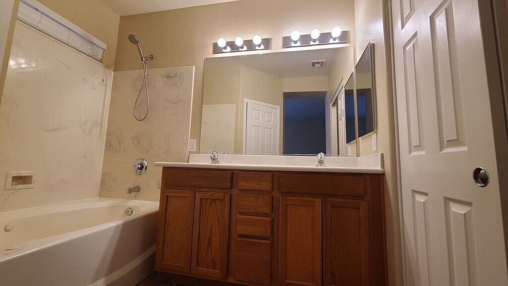 Each bedroom has their own bathroom! 3 bedrooms(1 downstairs), 3.5 bathrooms, Loft and 2 Car Garage. Tile and laminate flooring throughout. Walk-in closets. All appliances included: Refrigerator, Microwave, Stove, Dishwasher, Washer, and Dryer. Low maintenance backyard with covered patio. A Must See!! *The tenant is required to purchase renters insurance* Trash & sewer services included with the rent *