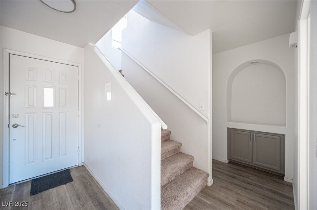 Welcome to this HIGHLY UPDATED 3-bedroom, 2-bathroom, 2-CAR GARAGE townhome nestled in a quiet, GATED COMMUNITY. Open floor plan with lots of natural light. BEDROOM and a full bathroom DOWNSTAIRS make it ideal for guests, a home office, or multigenerational living. Upstairs, you'll find a spacious primary suite with a massive walk-in closet and mountain views, a full bathroom, and an additional bedroom. LARGE, fully fenced, PRIVATE, and low maintenance BACKYARD—ideal for relaxing or entertainment. Community features a POOL, SPA, and plenty of guest parking. PRIME SPRING VALLEY LOCATION to groceries, restaurants, schools, and Downtown Summerlin shopping. This home has it all!
