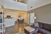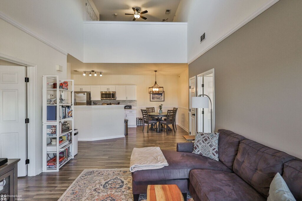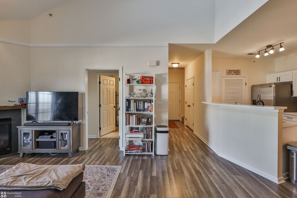 Bright, spacious 2-bedroom / 2-bath condo available now! Features an open-concept layout with vaulted ceilings, skylights, and great natural light. The main living area offers durable wide-plank flooring and a cozy fireplace, flowing into the dining area and an updated kitchen with white cabinetry, stainless steel appliances, tile backsplash, and a breakfast bar—perfect for everyday living and entertaining. Both bedrooms are generously sized, and the home includes two full bathrooms plus a bonus loft/flex space ideal for a home office, gym, or den. Enjoy relaxing outdoors on the private balcony with scenic views. Community amenities include a pool and clubhouse. Convenient to shopping, dining, and commuter routes—schedule your tour today! Move in costs: First months rent, one months security, and $197 admin fee.