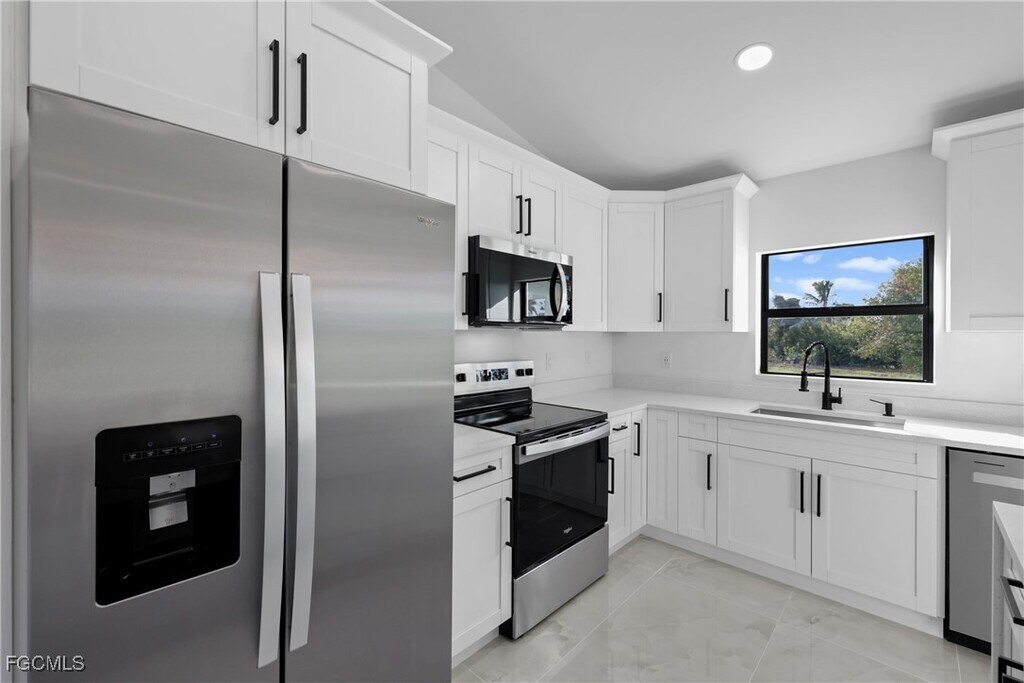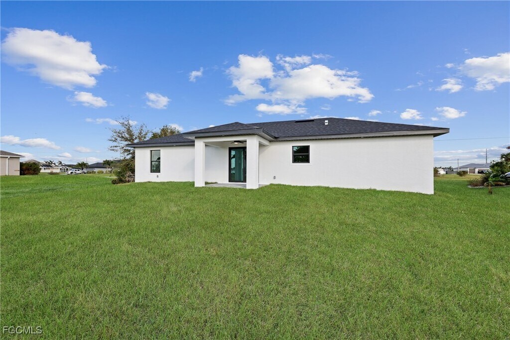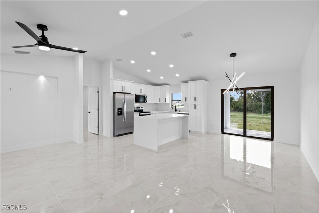 Be the first to live in this beautiful brand new construction home located in Northeast Cape Coral! This modern 3 bedroom,2 bathroom home features an open floor plan with contemporary finishes,stainless steel appliances,and impact resistant windows and doors. The kitchen offers sleek cabinetry,a large island,and plenty of storage and counter space perfect for everyday living and entertaining. The splitbedroom layout provides privacy for the spacious primary suite,complete with walk-in closest and a stylish ensuite bathroom with dual sinks and a walk-in shower. Step outside to you lanai (not screened) overlooking the freshwater canal,ideal for relaxing or enjoying the peaceful view. The home also includes a two car garage,tile flooring throughout. Located in a quiet area of NE Cape Coral,just minutes from shopping,dining,and main roadways. Experience the comfort and quality of new construction in this move in ready rental home.