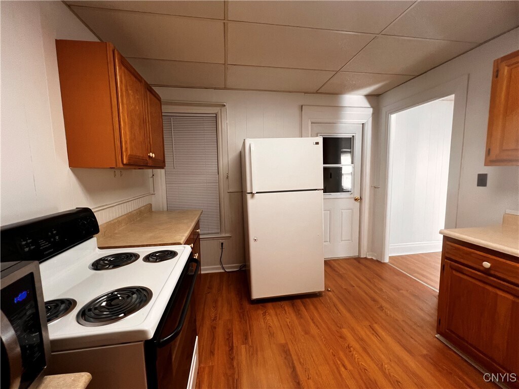 Three bedroom and one bathroom apartment in a duplex in the City of Watertown and close to most amenities. This apartment has a spacious layout downstairs with a living room,dining room,and additional room in between and three bedrooms upstairs. There are gleaming hardwood floors downstairs,a nice layout,updated kitchen,open front porch,three bedrooms and full bathroom upstairs,and laundry in the basement along with a 1 car garage. Shared driveway with parking area in the back and shared back yard with other side. No Smoking Inside and No Pets. Security Deposit Due at Lease Signing.