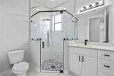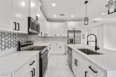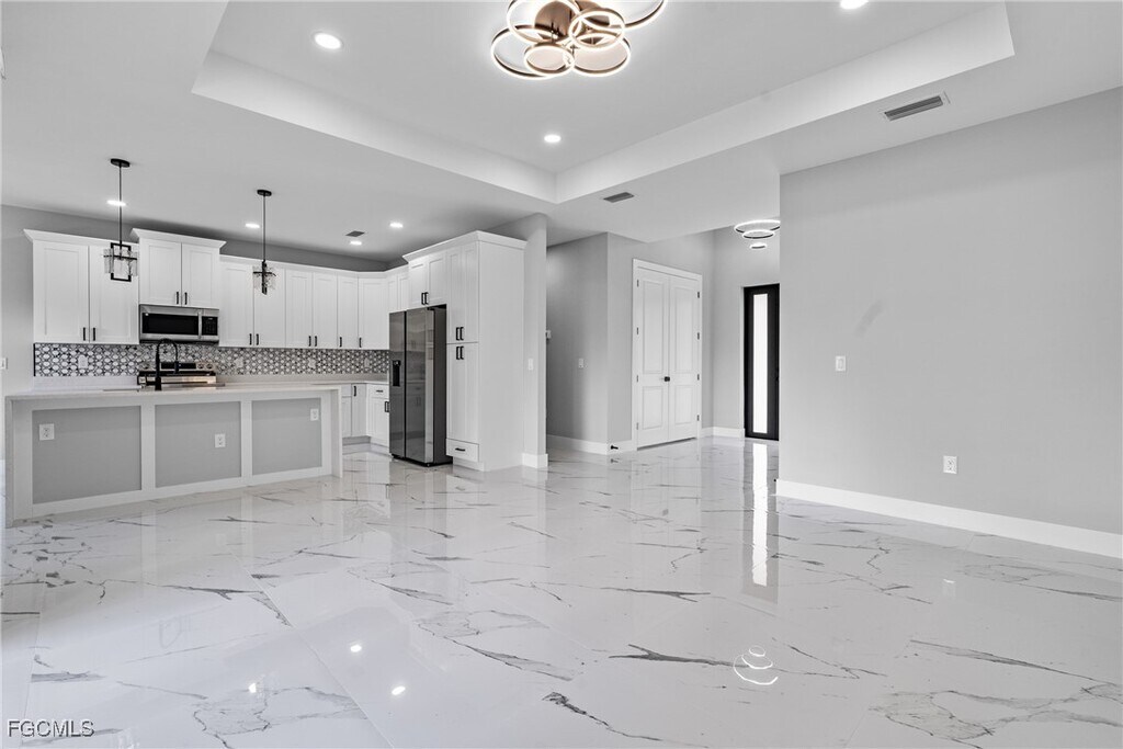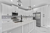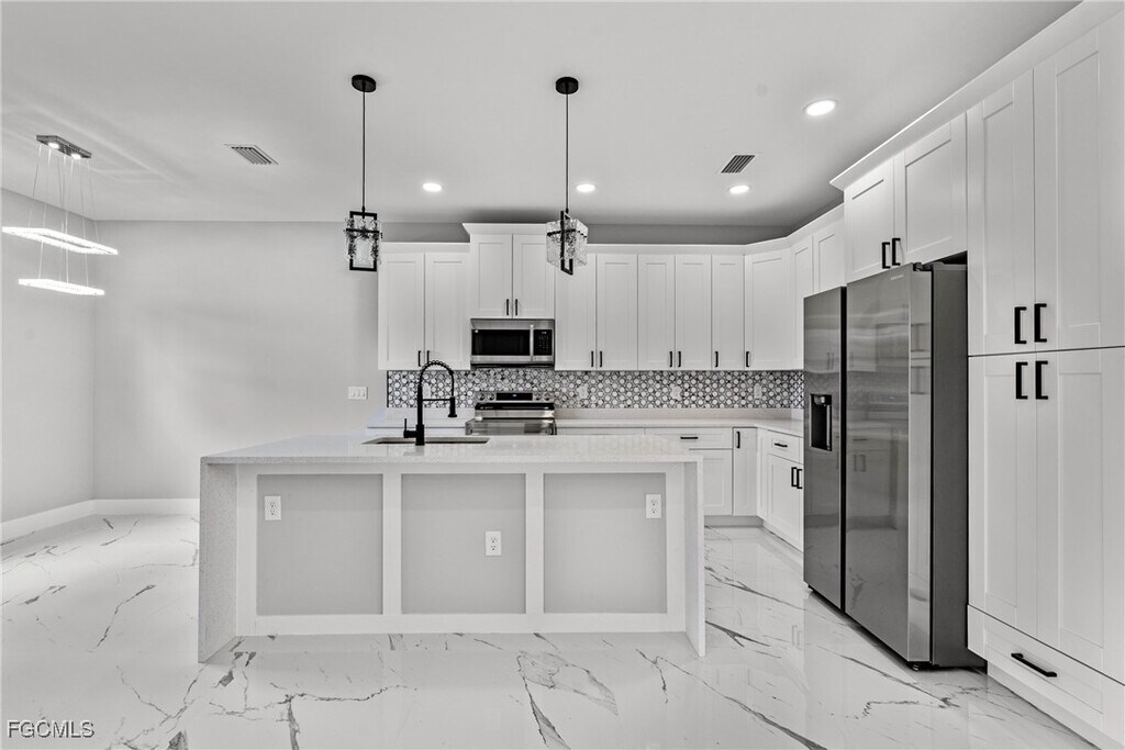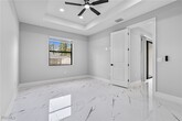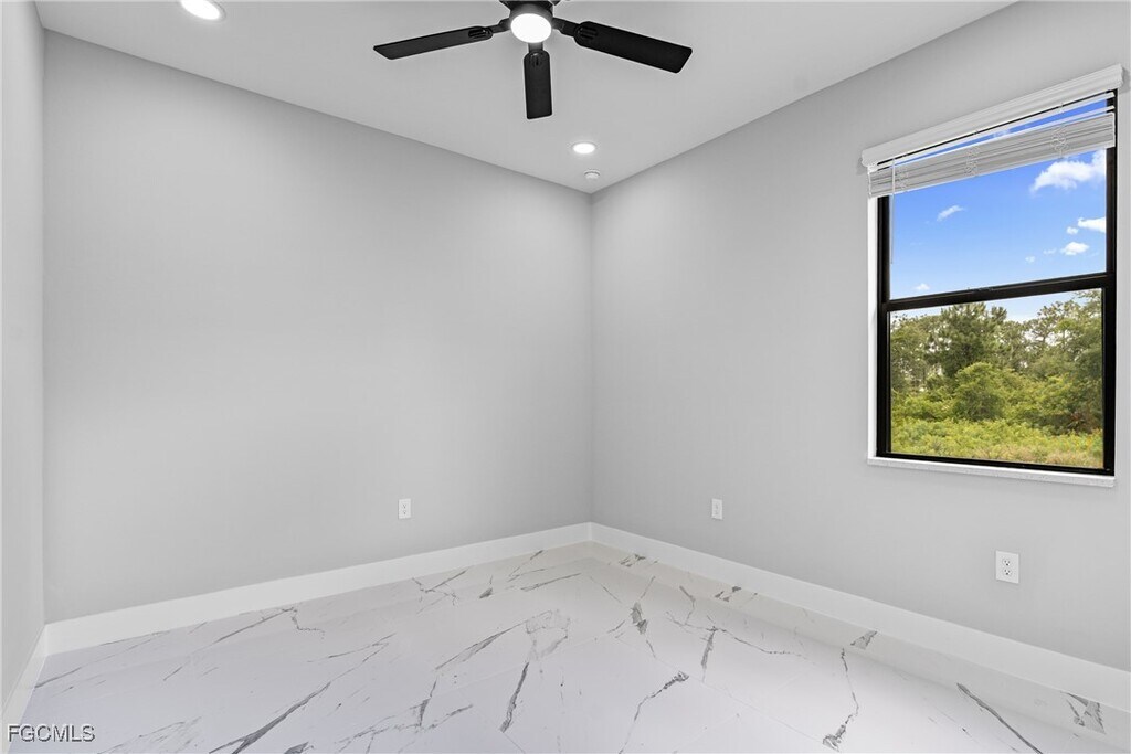 Experience modern elegance in this newly constructed 4-bedroom,3-bathroom home located in the heart of Lehigh Acres. This residence boasts impact-resistant windows and doors,sleek porcelain tile flooring throughout,and contemporary fixtures that enhance its sophisticated appeal. The gourmet kitchen is a chef's dream,featuring quartz countertops,a striking waterfall island,and top-of-the-line stainless steel appliances,providing both functionality and style. An under-truss lanai offers a seamless transition between indoor and outdoor living,perfect for relaxing or entertaining while being sheltered from the elements. Situated near top-rated schools,shopping centers,restaurants,and beautiful beaches,this home offers unparalleled convenience. Discover the perfect blend of luxury and location in this exceptional property.