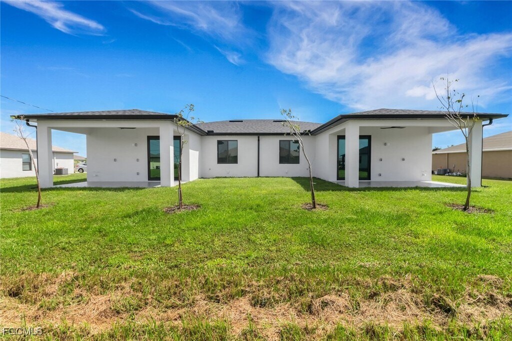 LUXURY Duplex in Cape Coral – Both Sides Available NOW! Be the VERY FIRST to live in this stunning,just-completed 2025-built duplex – one of the largest and most upgraded in all of Cape Coral! 3 spacious bedrooms,2 full bathrooms,Attached 1-car garage with premium epoxy flooring. Extra driveway parking for guests. Gorgeous porcelain tile flooring throughout (no carpet!) Quartz countertops & high-end finishes in the kitchen! All hurricane-impact windows & doors! Large Lanai – perfect for entertaining or relaxing! Big yard (triple lot) Full-size washer & dryer included. City water & sewer (no well/septic hassles). Centrally located just minutes from Pine Island Rd – quick drive to Publix,Target,restaurants,shops,and I-75/Fort Myers. $2,250/month – Annual lease preferred. Shorter-term leases considered case-by-case with adjusted terms. Both sides of the duplex are currently available – perfect for families wanting to live next to each other. Available immediately – schedule your private showing today before these are gone! First month + security deposit moves you in. Background/credit check required.