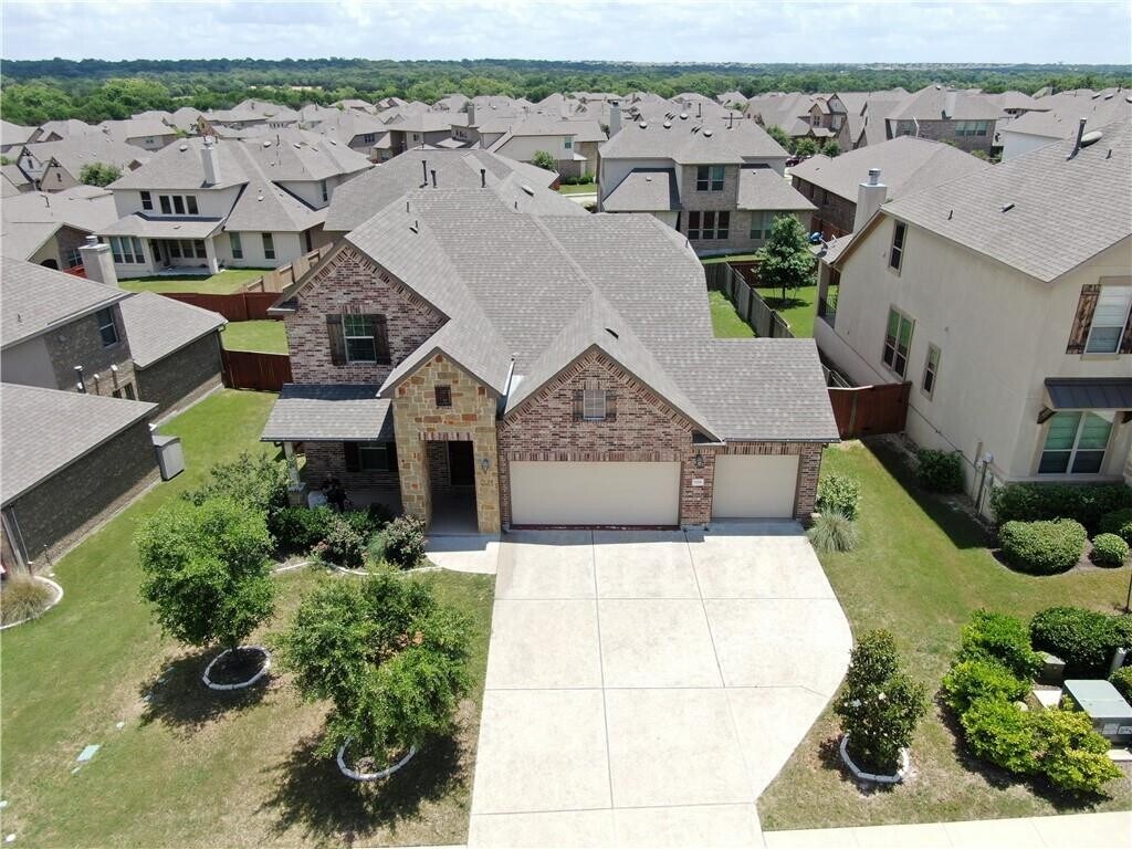 Spacious 4-bedroom, 3-bath two-story home in Leander ISD with 3,041 sq. ft. The functional floor plan features the primary bedroom and a guest bedroom with two full baths on the main level. The living room offers high ceilings, large windows for natural light, and a stone fireplace. The kitchen opens to the living area with an extended dining space. A flex room off the kitchen can be used as a home office or study. Upstairs includes an open game room and two bedrooms connected by a Jack-and-Jill bathroom. The oversized covered patio with gas connection for a grill overlooks a large backyard that offers plenty of space for outdoor entertaining. The community features multiple walking trails, a pool, park, and HOA-organized neighborhood activities. MLS ID 4507565